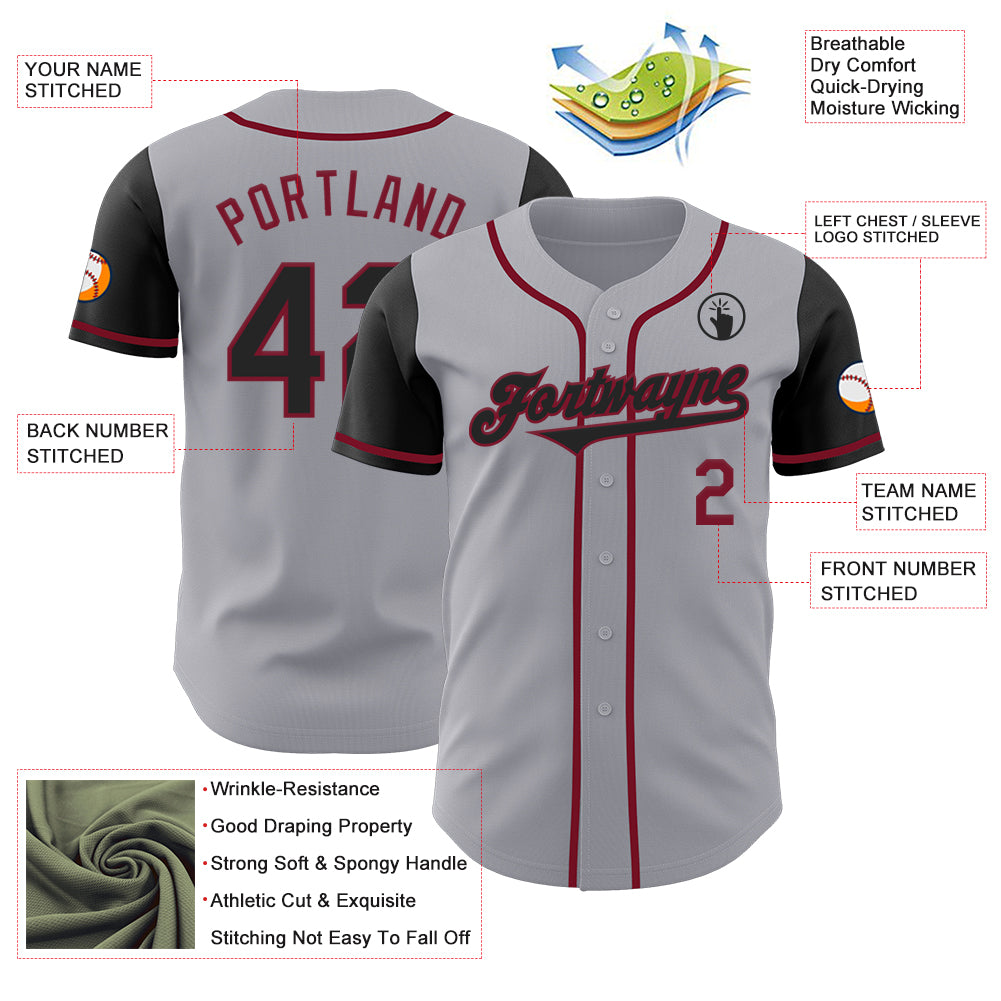 Custom Gray Black-Crimson Authentic Two Tone Baseball Jersey