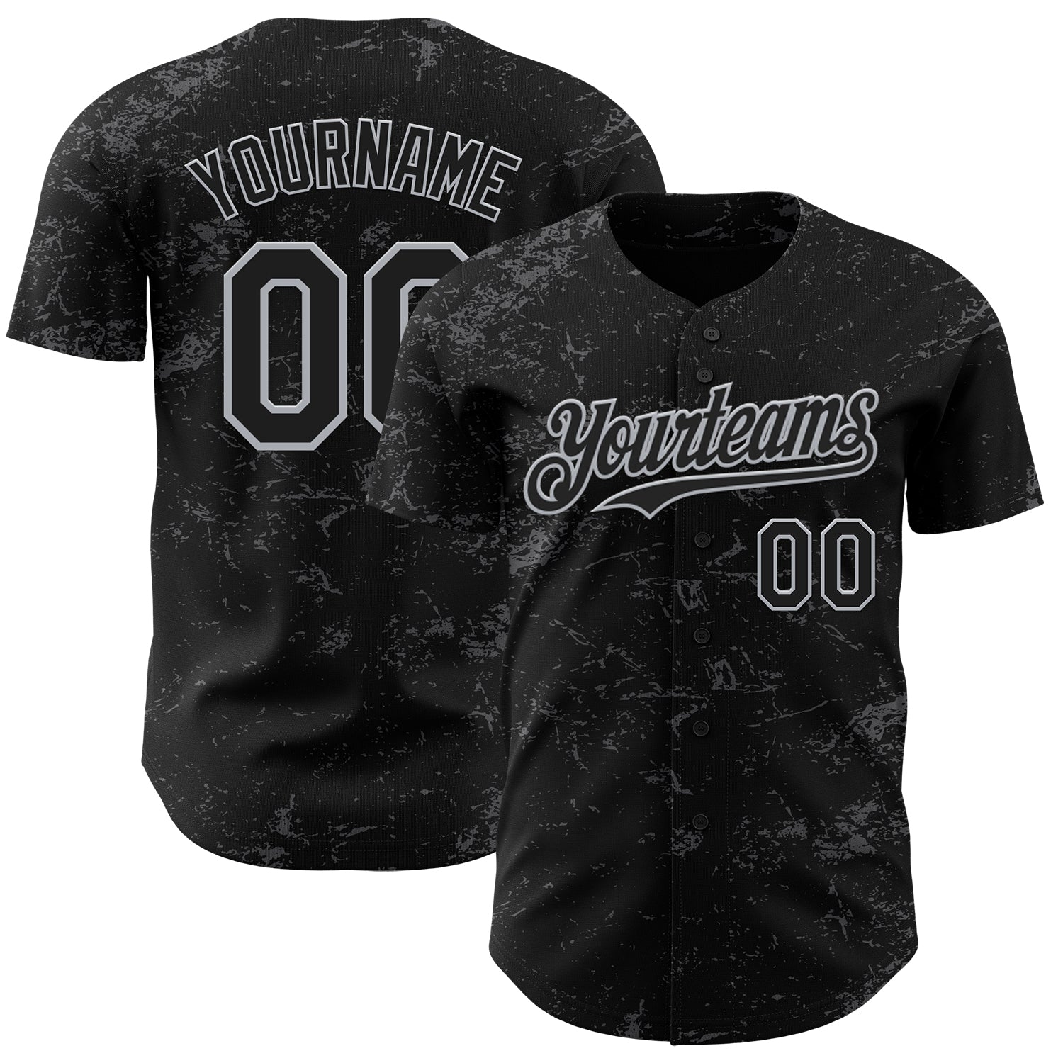 Custom Black Gray-Steel Gray 3D Pattern Design Abstract Splatter Texture Authentic Baseball Jersey