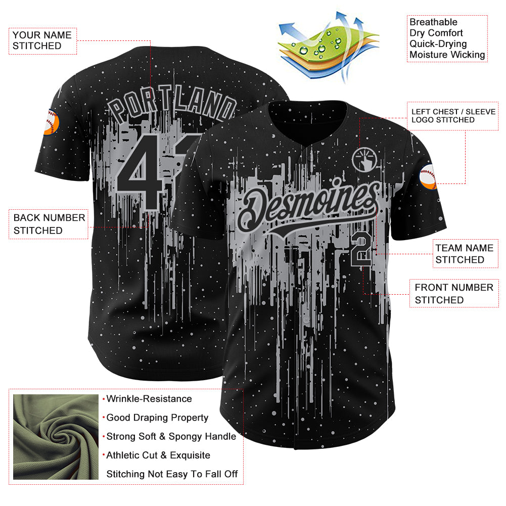 Custom Black Gray 3D Pattern Design Dripping Splatter Art Authentic Baseball Jersey