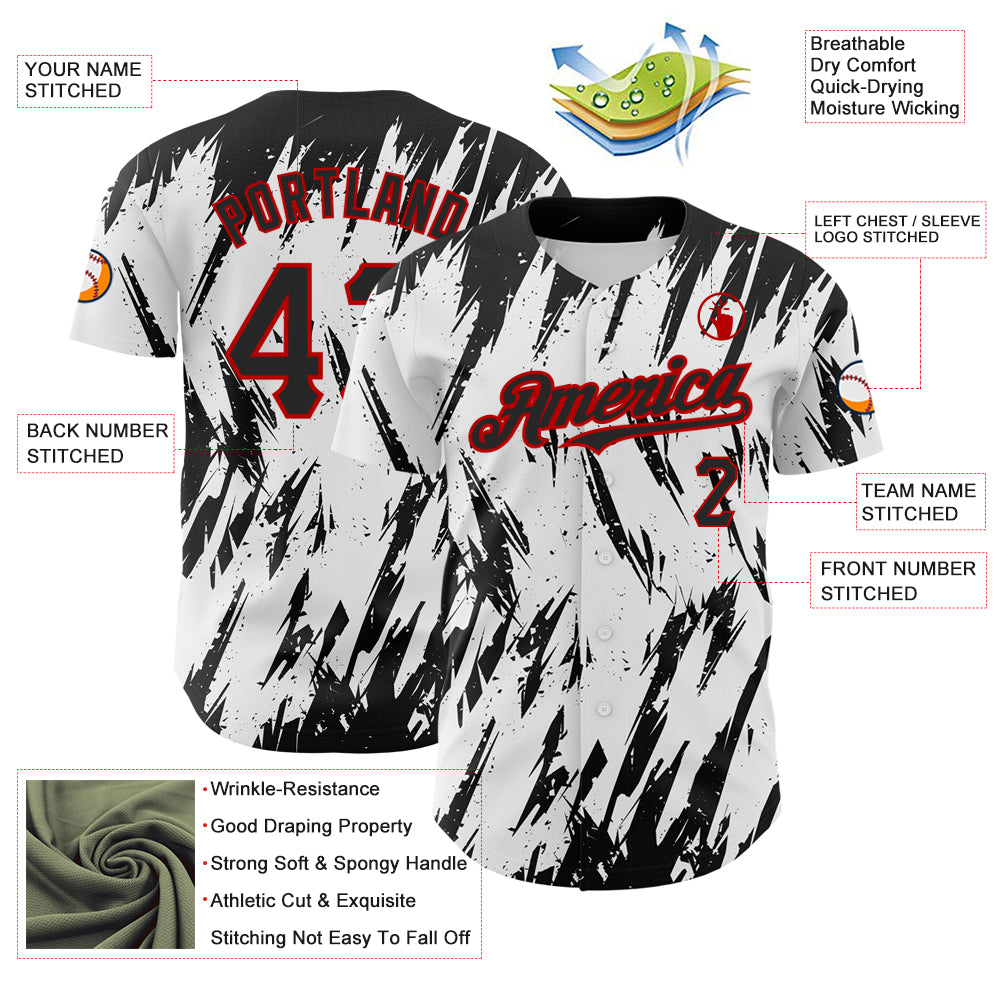 Custom White Black-Red 3D Pattern Design Abstract Sharp Shape Authentic Baseball Jersey