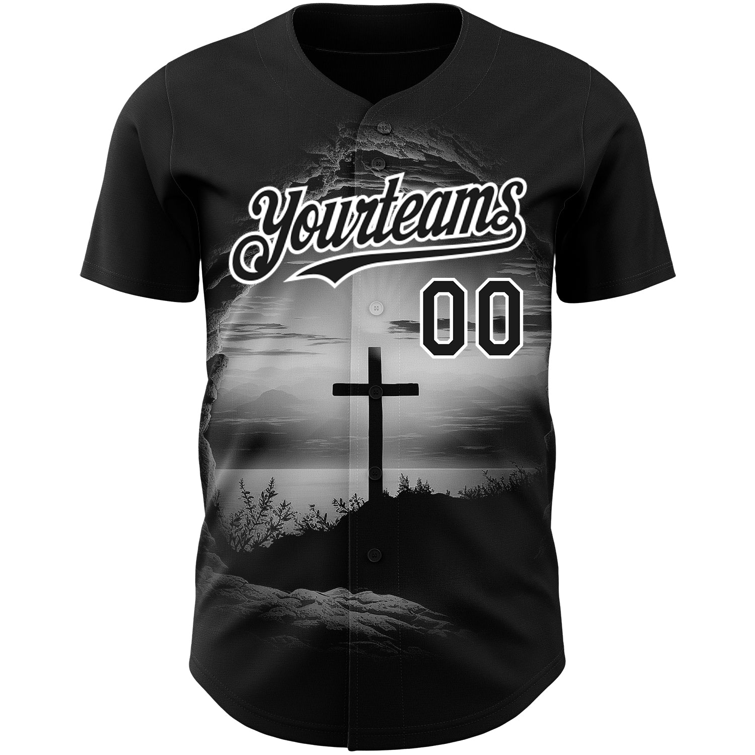 Custom Black White 3D Pattern Design Religion Cross Jesus Christ Ash Wednesday Authentic Baseball Jersey