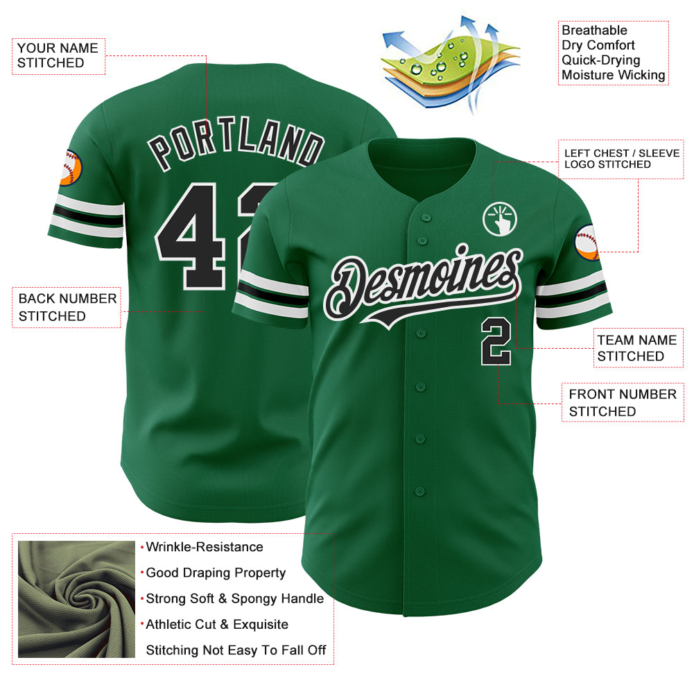 Custom Kelly Green Black-White Authentic Baseball Jersey