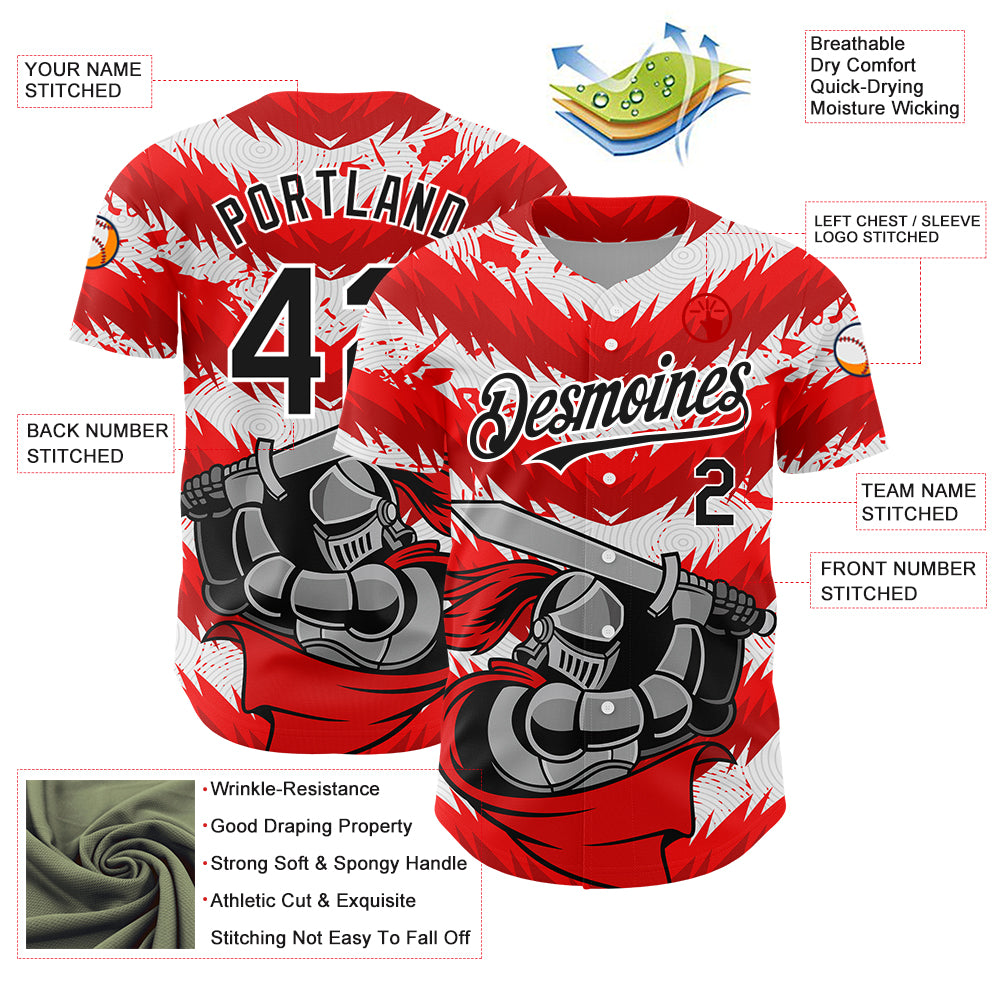 Custom Red Black-White 3D Pattern Design Knight Hero Art Authentic Baseball Jersey