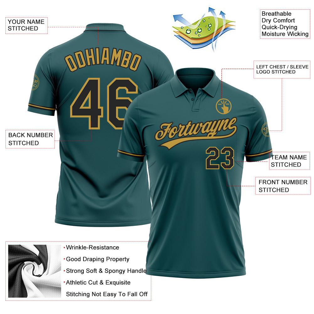 Custom Midnight Green Black-Old Gold Performance Vapor Golf Polo Shirt