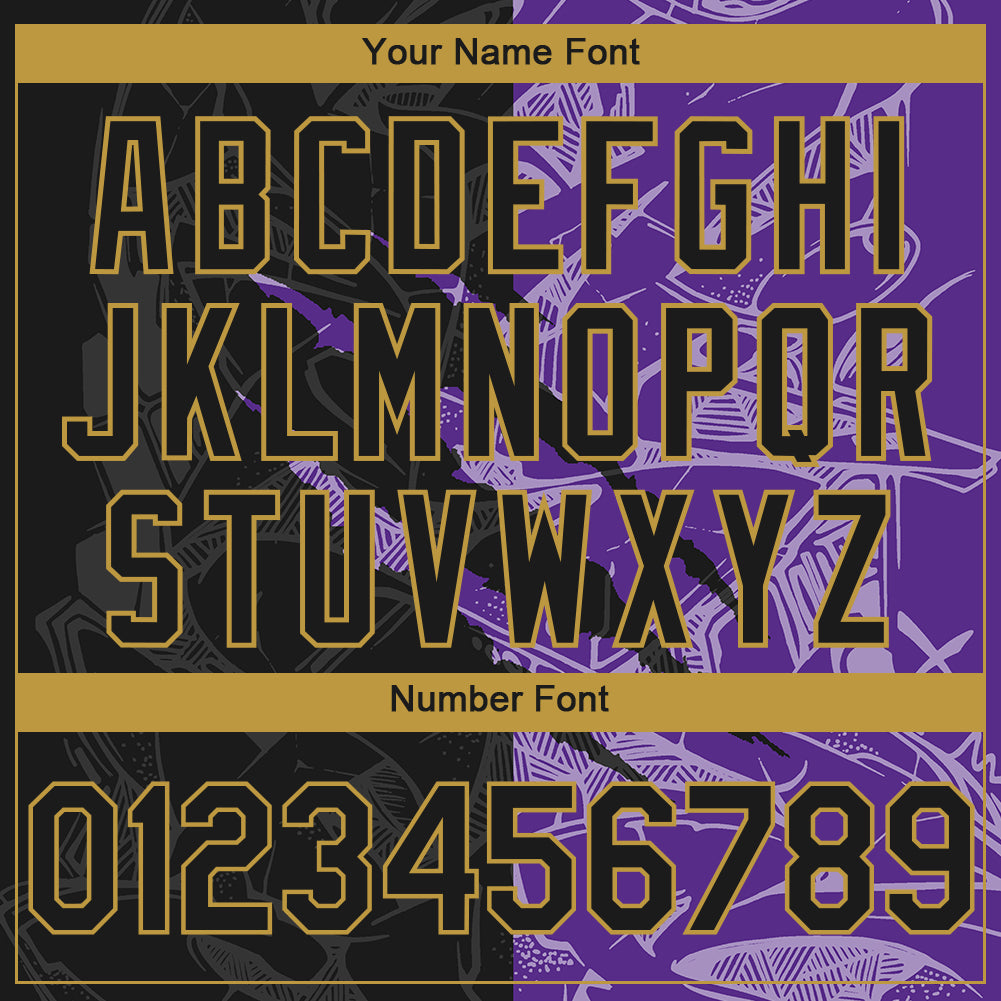 Custom Stitched Graffiti Pattern Black Purple-Old Gold 3D Scratch Sports Pullover Sweatshirt Hoodie