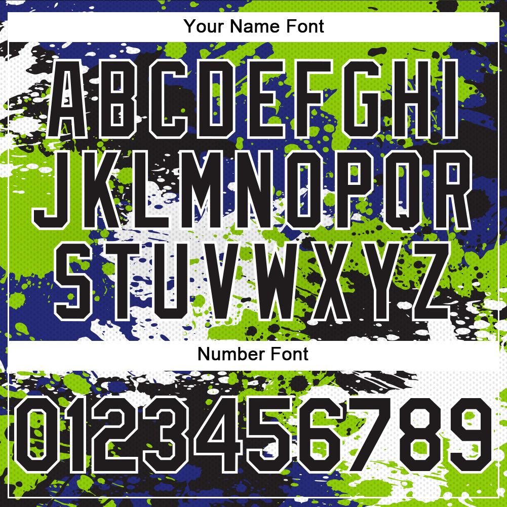 Custom Black Neon Green-Royal Abstract Splash Grunge Art 3D Pattern Design Bomber Full-Snap Varsity Letterman Hoodie Jacket