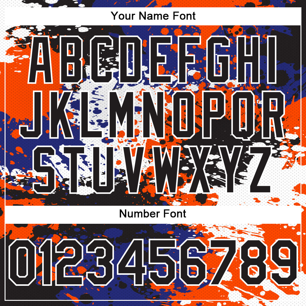 Custom Black Orange-Royal Abstract Splash Grunge Art 3D Pattern Design Bomber Full-Snap Varsity Letterman Hoodie Jacket