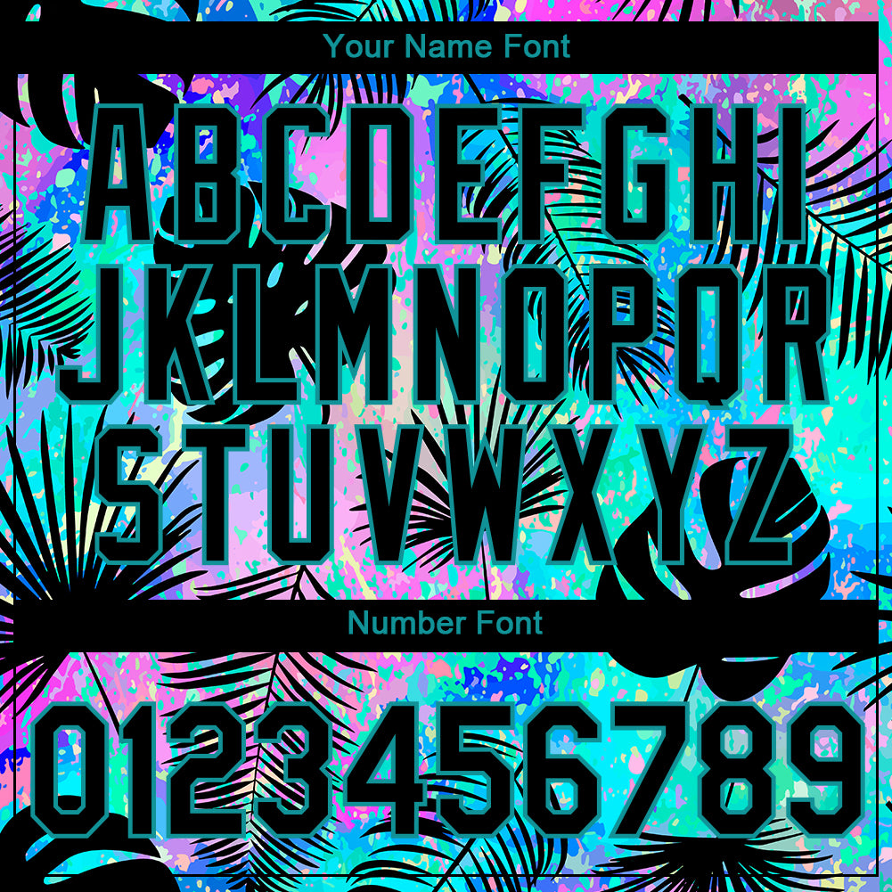 Custom Teal Black 3D Pattern Design Hawaii Palm Leaves Performance T-Shirt