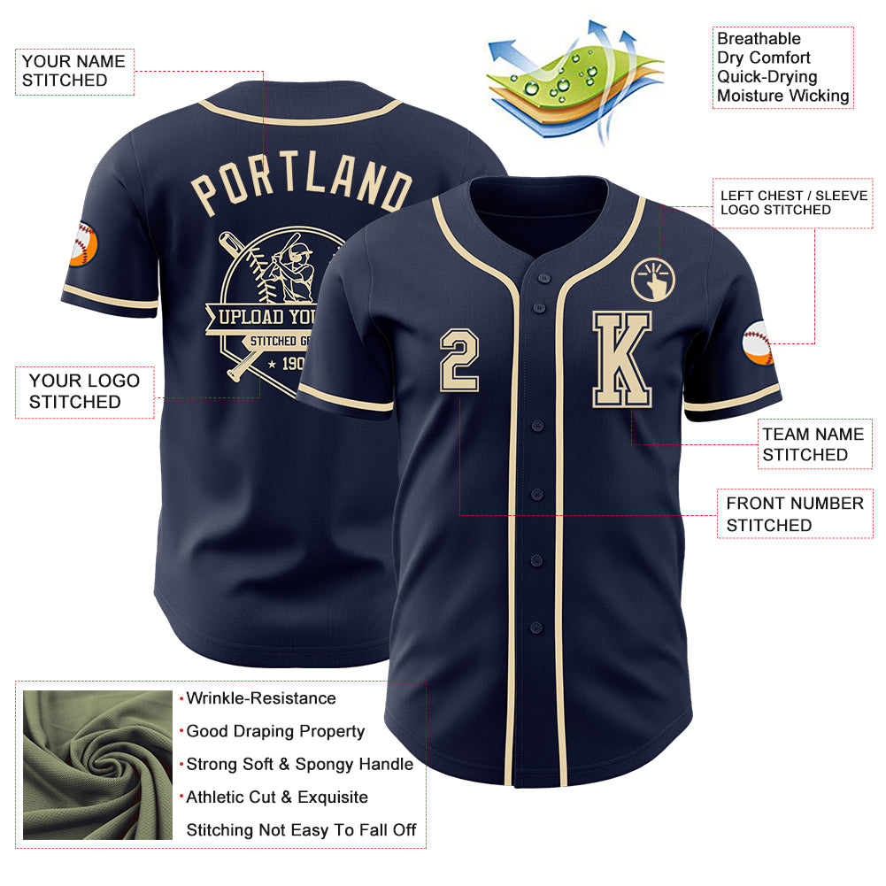 Custom Navy Cream Authentic Baseball Jersey
