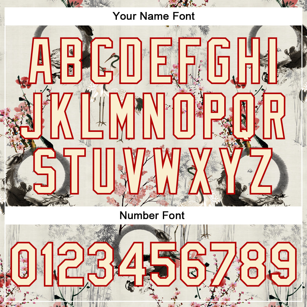 Custom Cream Red Heron And Flower 3D Pattern Design Bomber Full-Snap Varsity Letterman Jacket