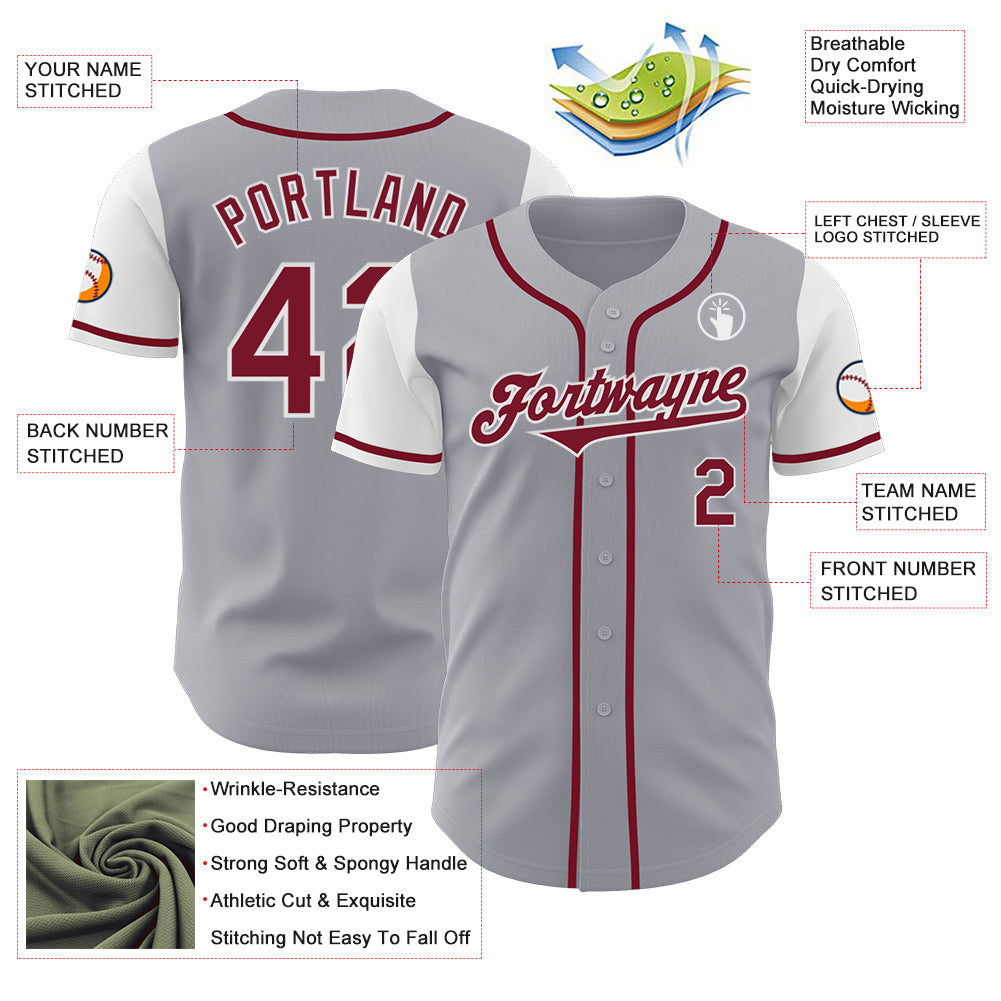 Custom Gray Crimson-White Authentic Two Tone Baseball Jersey