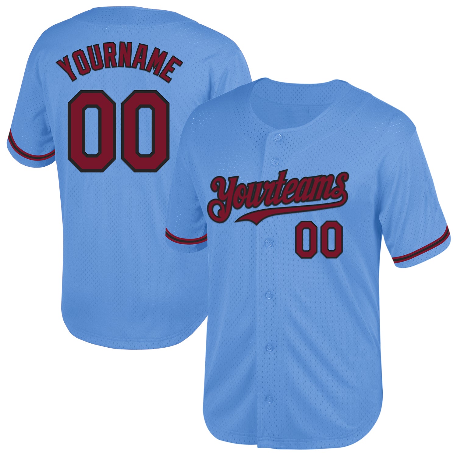 Custom Light Blue Crimson-Black Mesh Authentic Throwback Baseball Jersey
