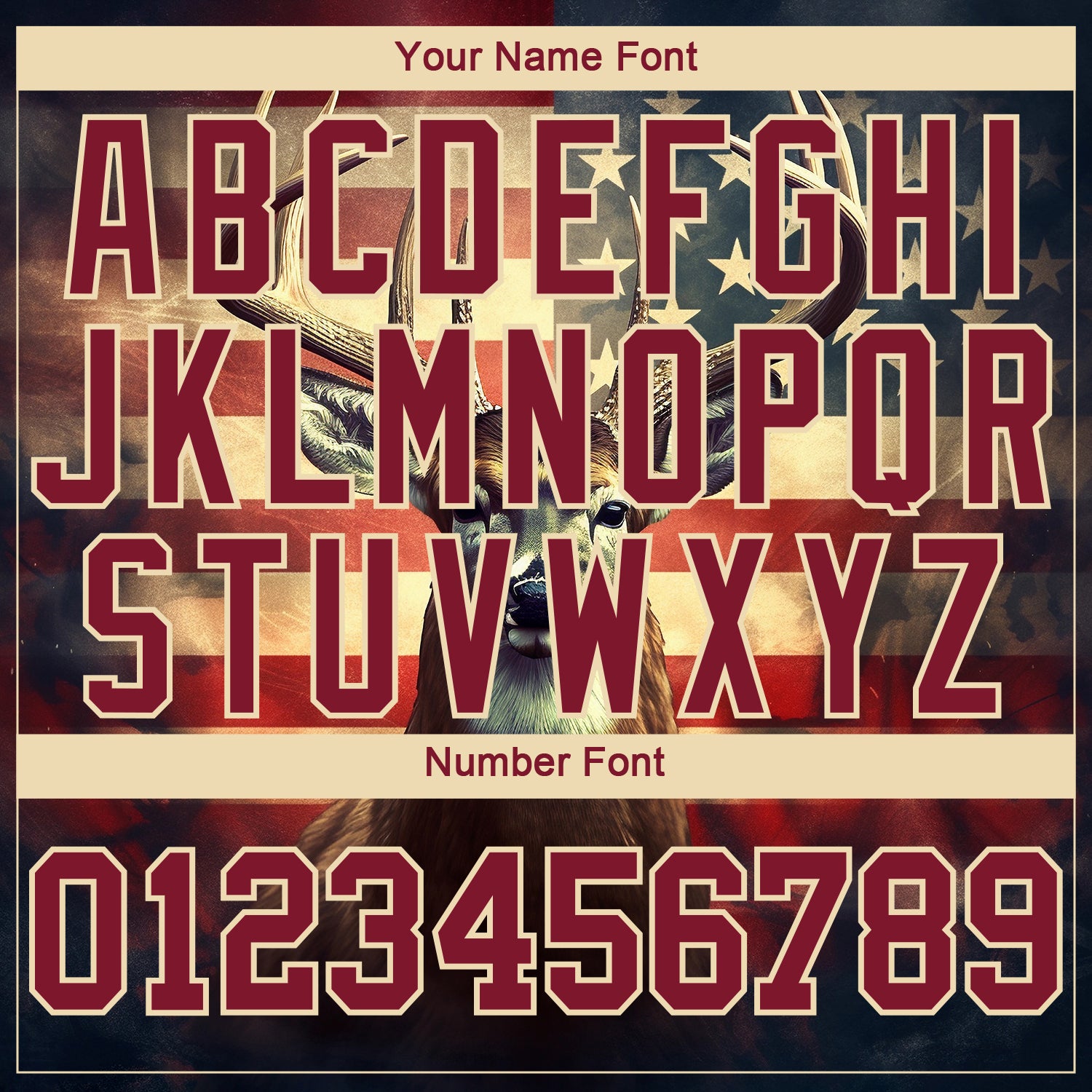 Custom Navy Crimson-City Cream 3D Animal Deer Hunting American Flag Long Sleeve Performance T-Shirt