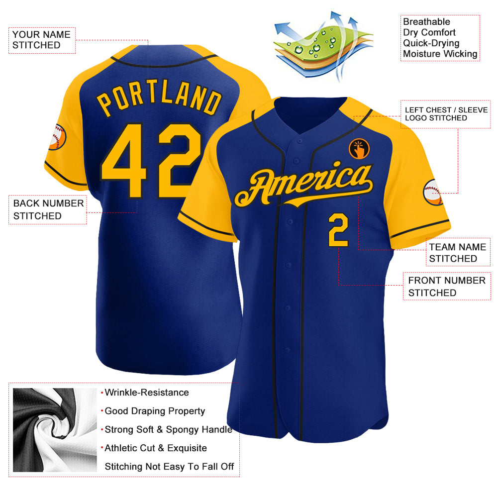 Custom Royal Gold-Black Authentic Raglan Sleeves Baseball Jersey