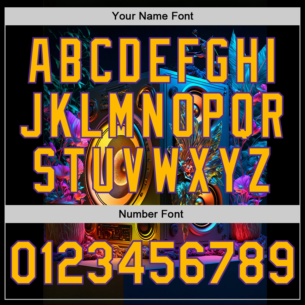 Custom Black Gold-Purple 3D Pattern Design Music Festival Vintage Speaker Music Sound System Authentic Baseball Jersey