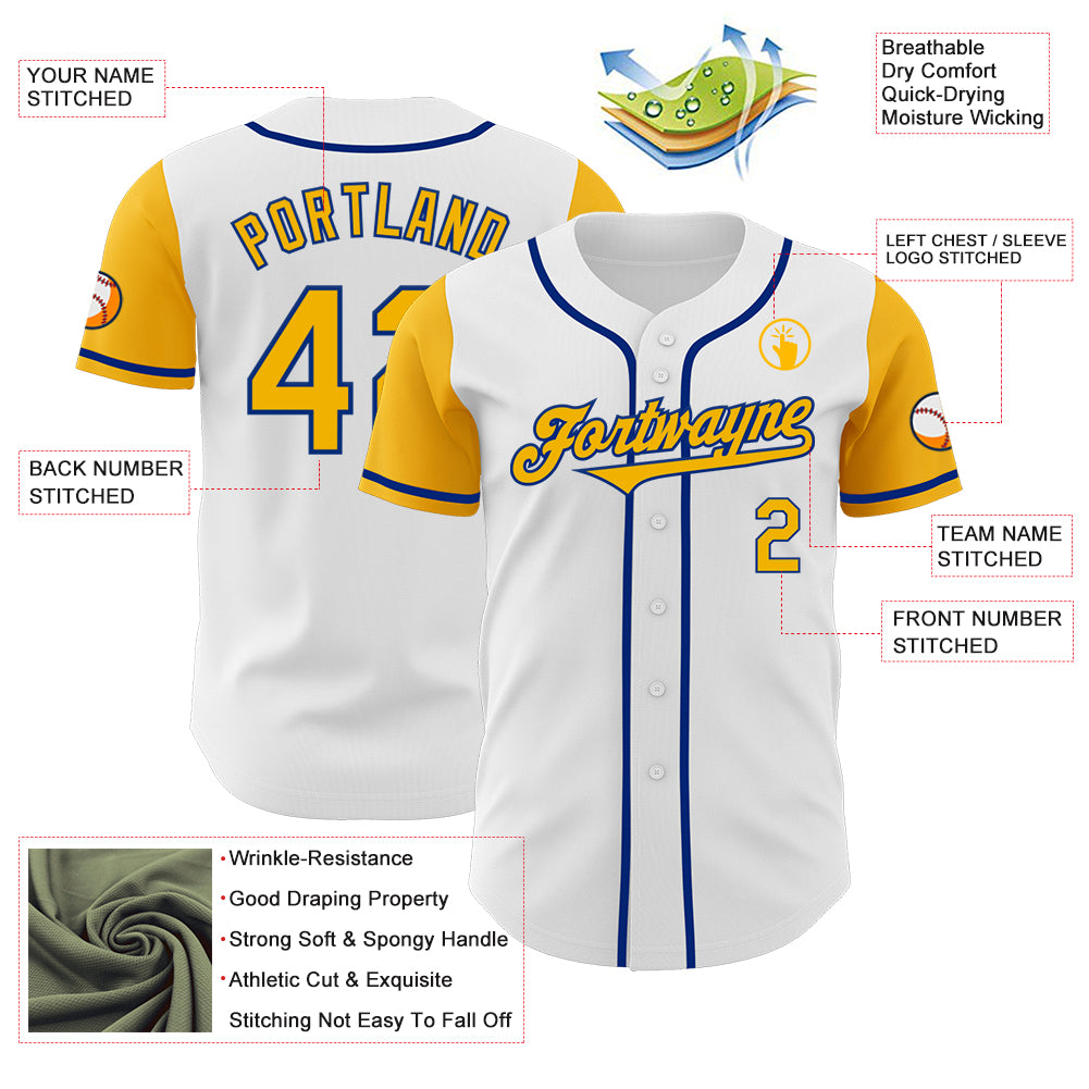 Custom White Gold-Royal Authentic Two Tone Baseball Jersey