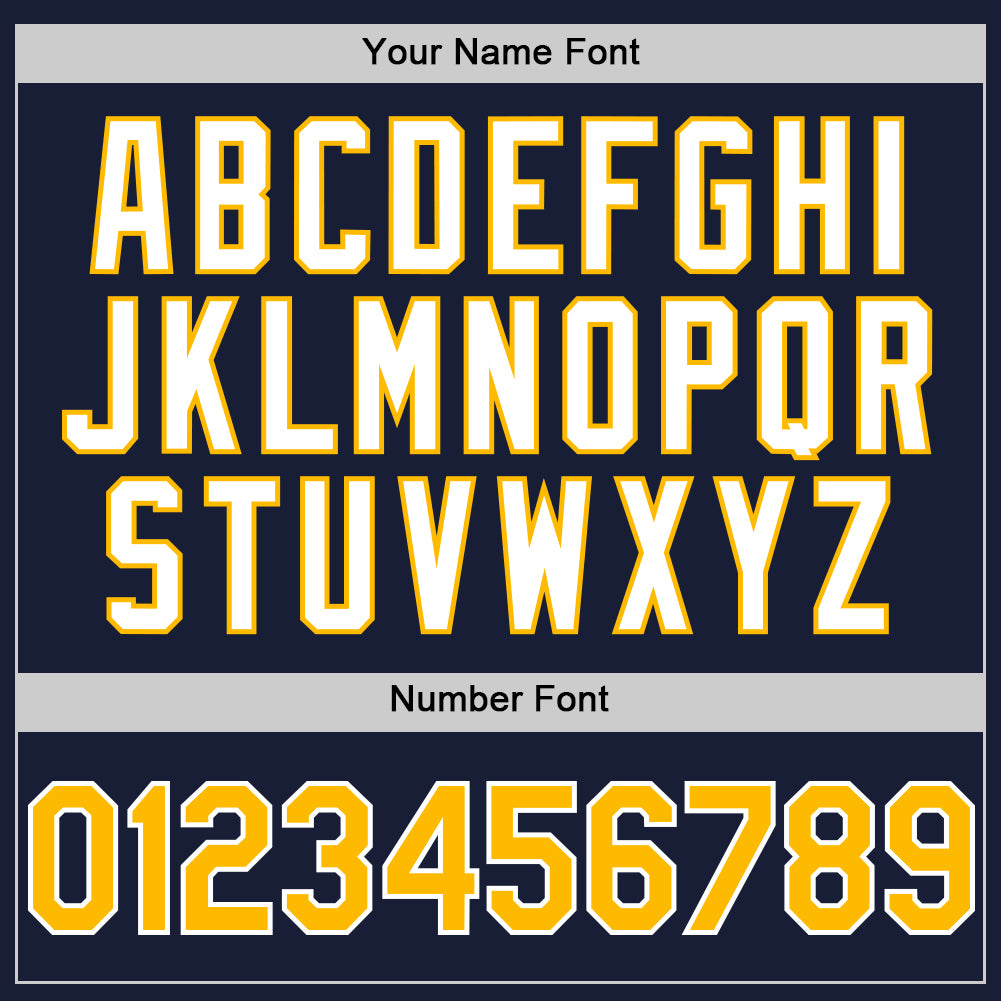 Custom Navy Gold-White Bomber Full-Snap Varsity Letterman Hoodie Jacket