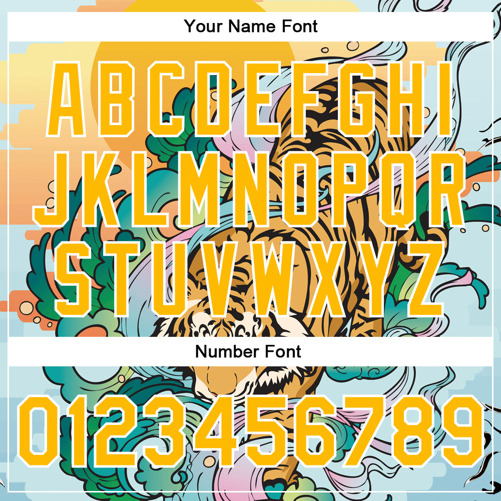 Custom Lakes Blue Gold-White Tiger 3D Pattern Design Bomber Full-Snap Varsity Letterman Jacket