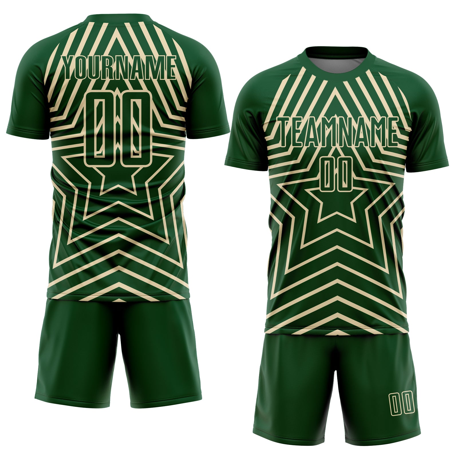 Custom Green Cream Stars Sublimation Soccer Uniform Jersey