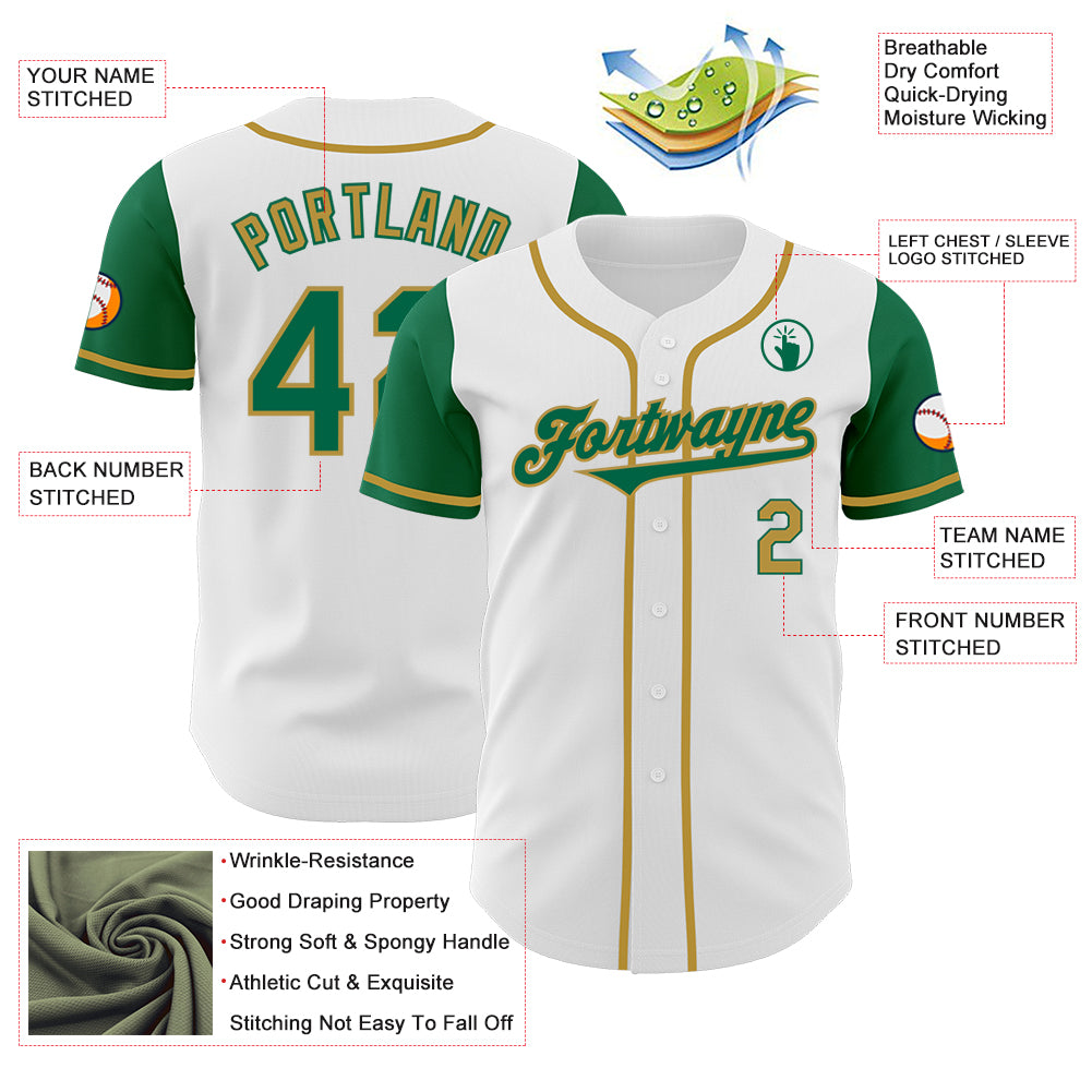 Custom White Kelly Green-Old Gold Authentic Two Tone Baseball Jersey