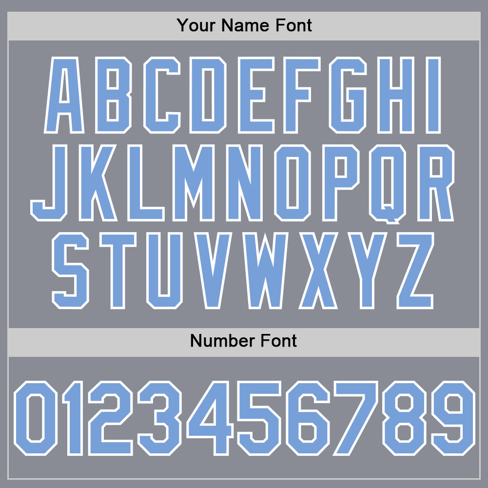 Custom Gray Light Blue-White Bomber Full-Snap Varsity Letterman Hoodie Jacket