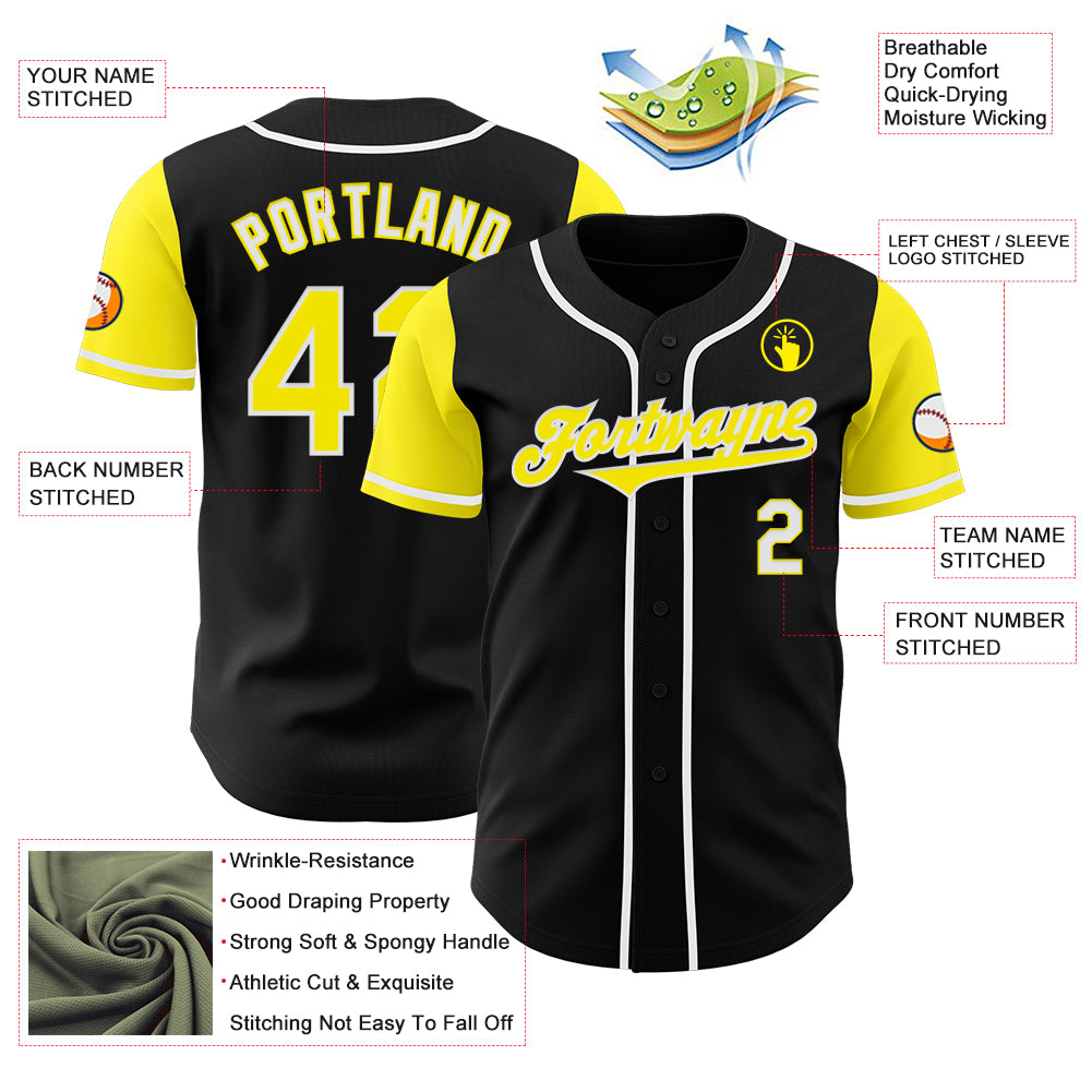 Custom Black Light Yellow-White Authentic Two Tone Baseball Jersey