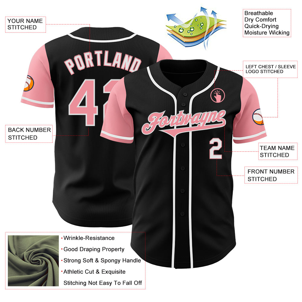 Custom Black Medium Pink-White Authentic Two Tone Baseball Jersey