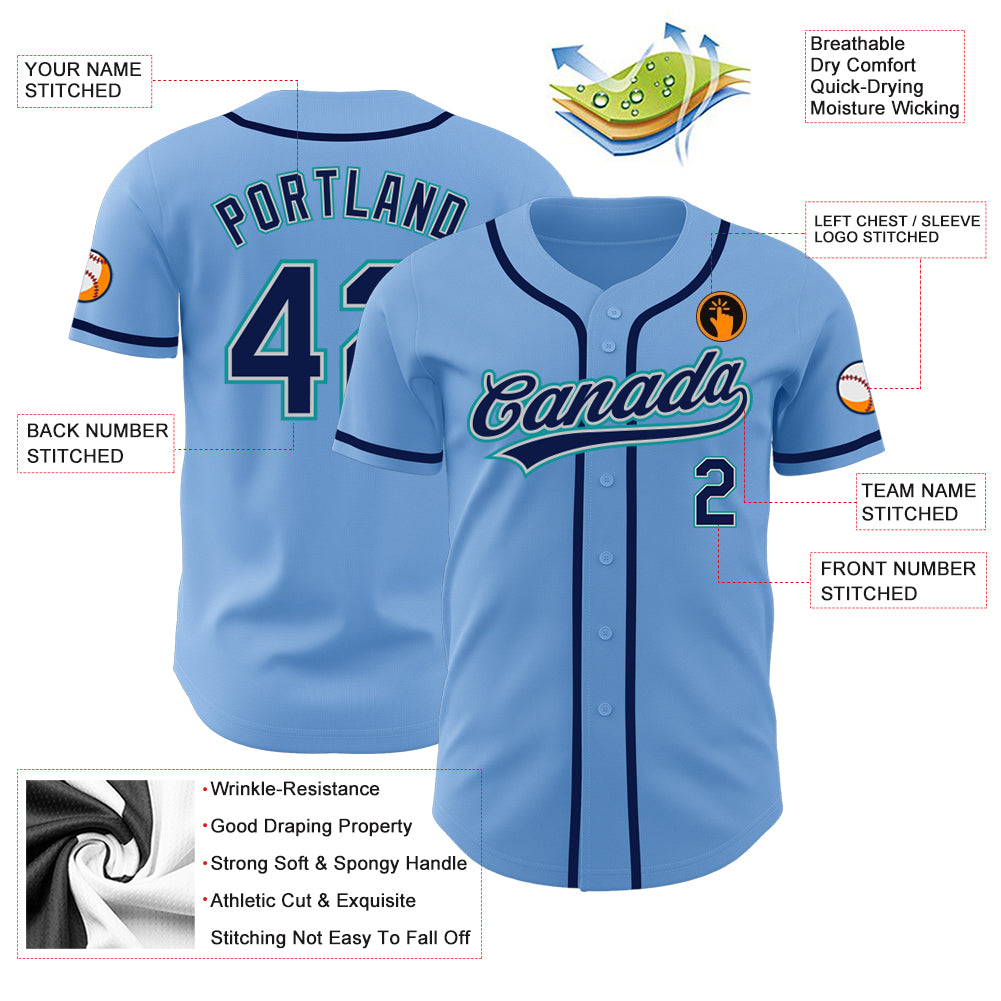 Custom Light Blue Navy Gray-Teal Authentic Baseball Jersey