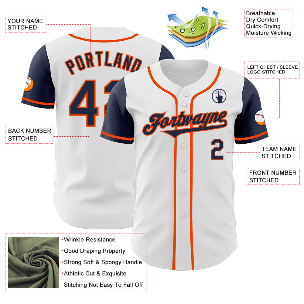 Custom White Navy-Orange Authentic Two Tone Baseball Jersey