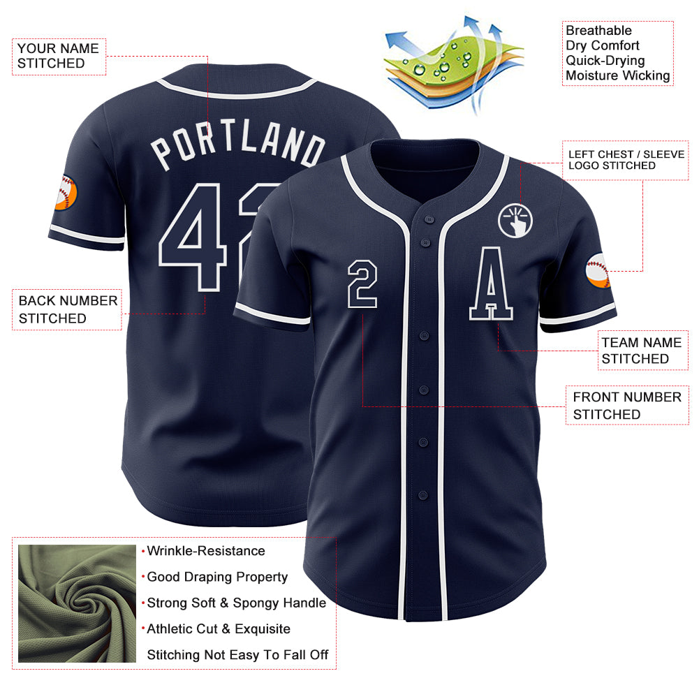Custom Navy White Authentic Baseball Jersey