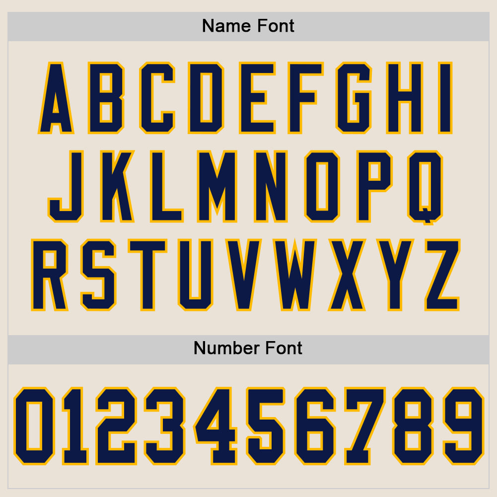 Custom Cream Navy-Gold Mesh Authentic Throwback Football Jersey