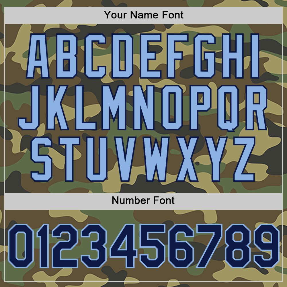Custom Camo Navy-Light Blue Bomber Full-Snap Varsity Letterman Salute To Service Hoodie Jacket