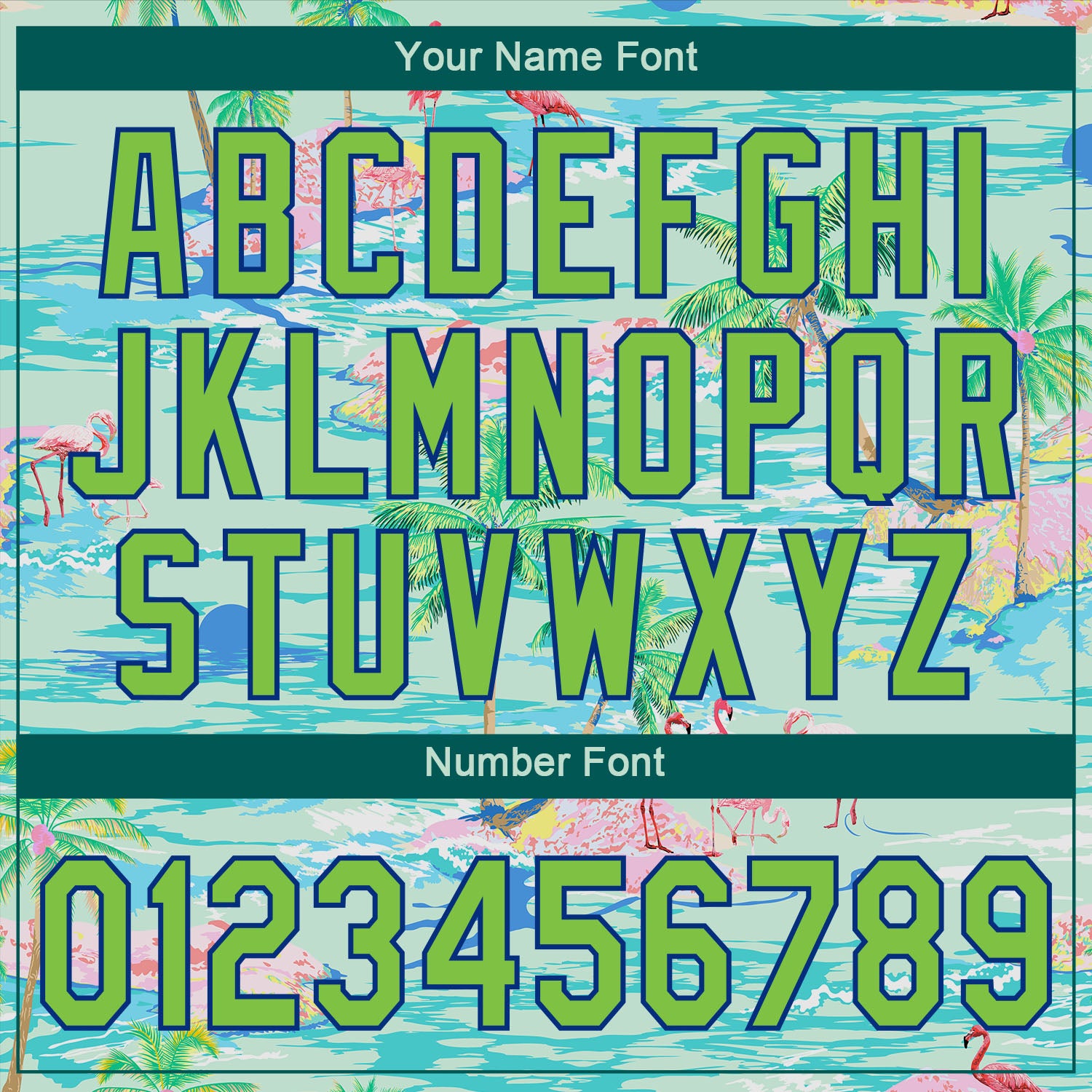 Custom Lakes Blue Neon Green-Royal 3D Pattern Design Beach Hawaii Palm Trees And Flamingo Authentic Baseball Jersey