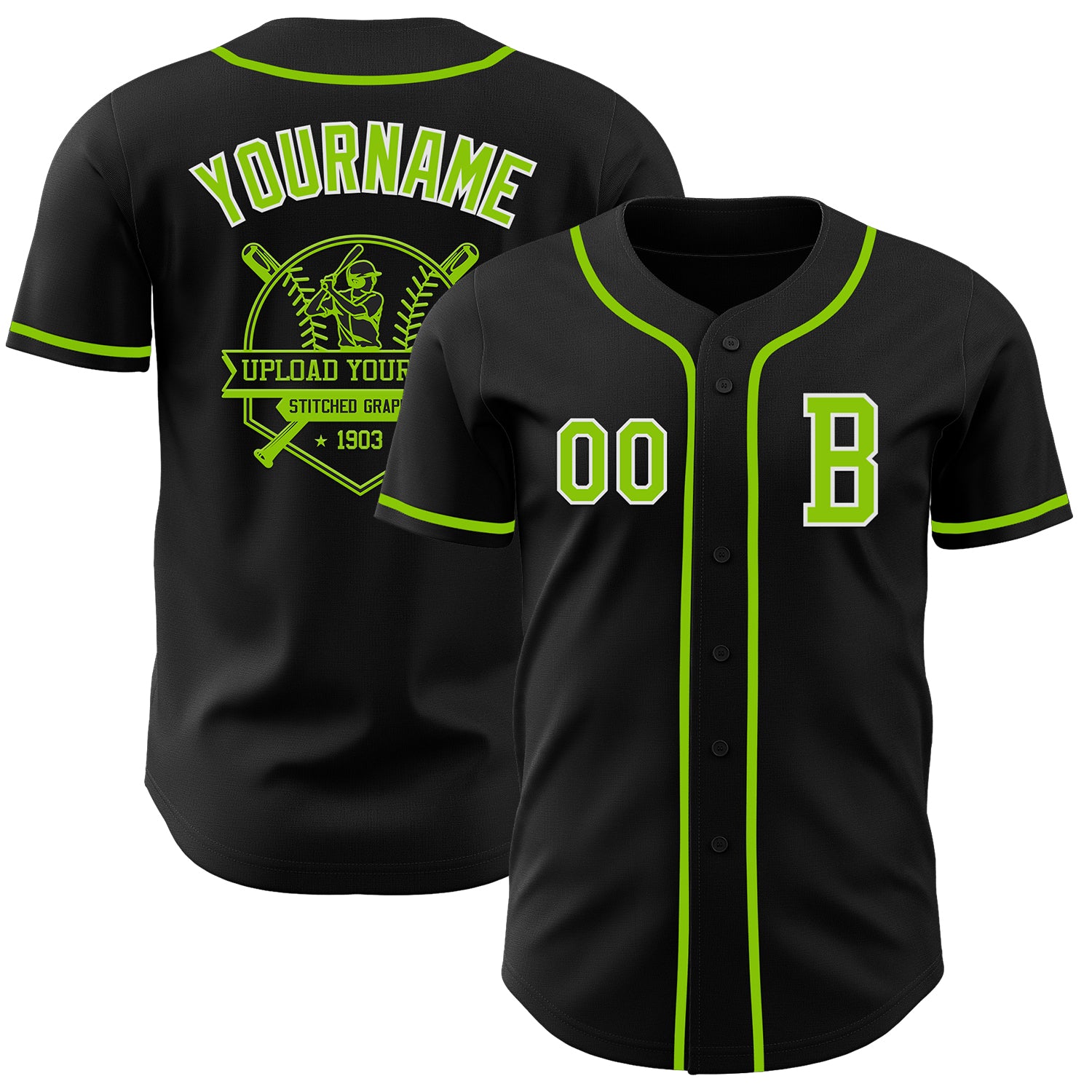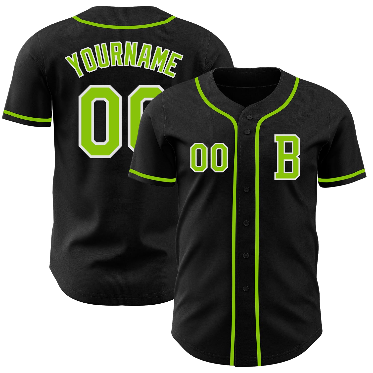Custom Black Neon Green-White Authentic Baseball Jersey