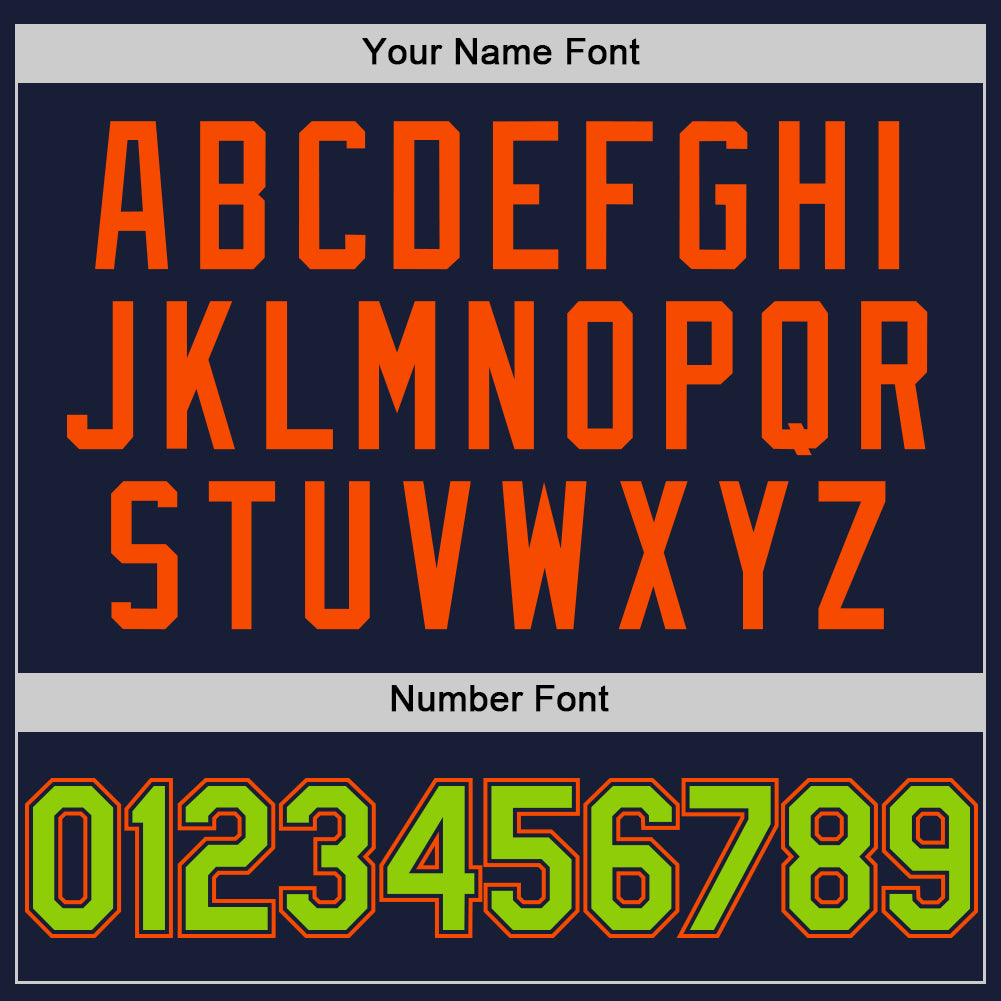 Custom Navy Neon Green-Orange Bomber Full-Snap Varsity Letterman Two Tone Hoodie Jacket