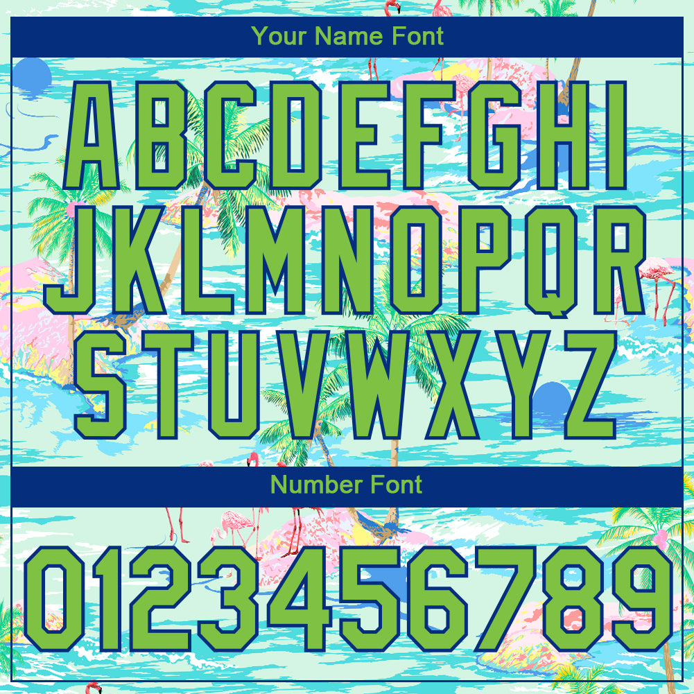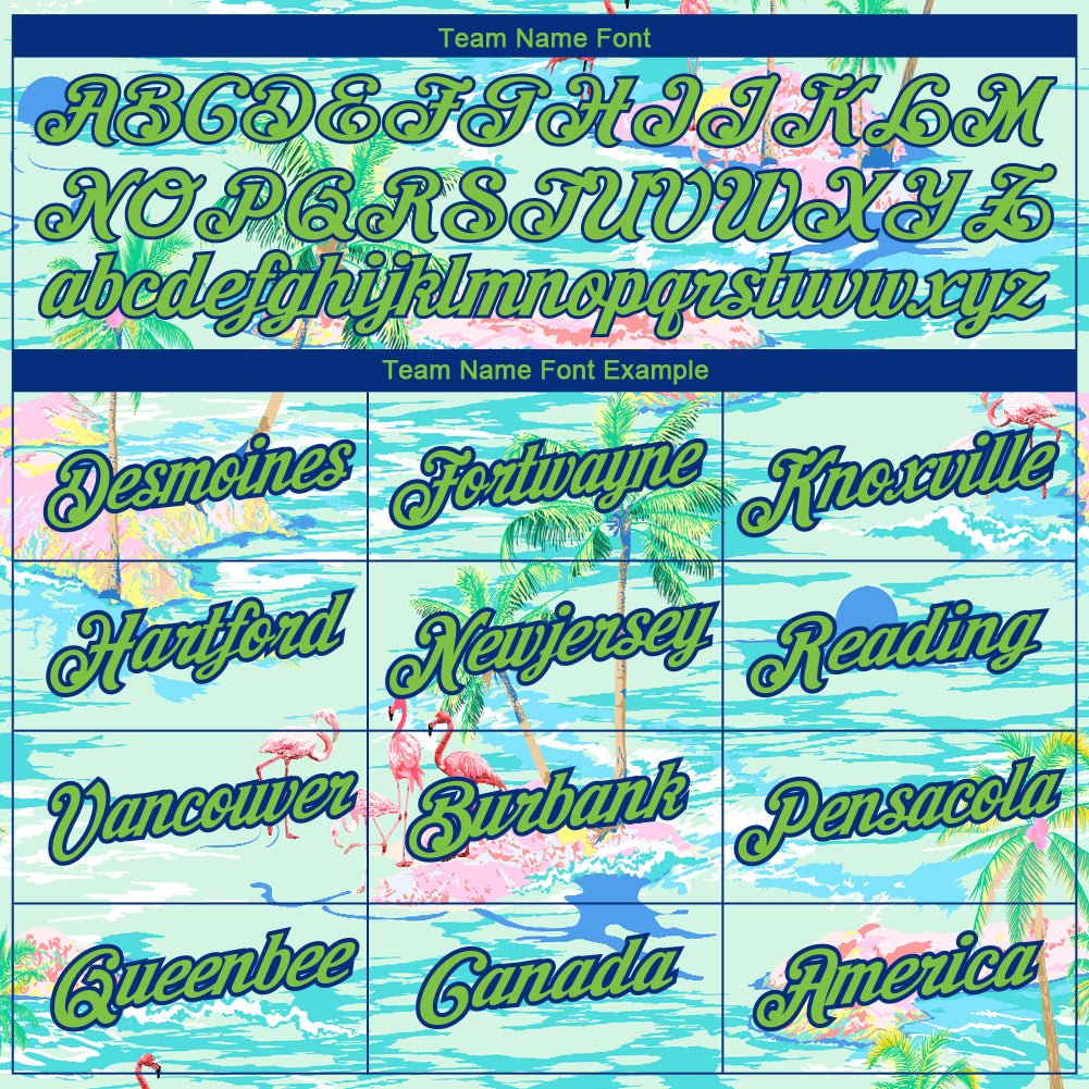 Custom Lakes Blue Neon Green-Navy 3D Pattern Design Beach Hawaii Palm Trees And Flamingo Performance T-Shirt