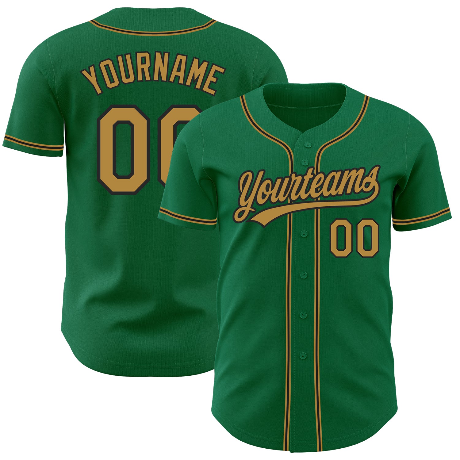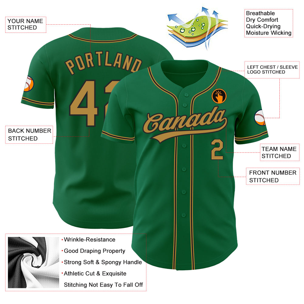 Custom Kelly Green Old Gold-Black Authentic Baseball Jersey