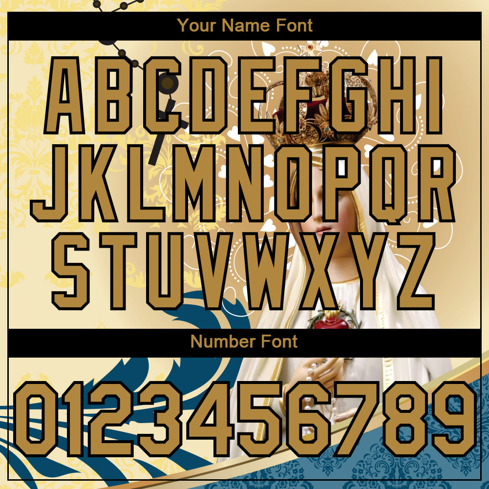 Custom Old Gold Black 3D Pattern Design Religion Virgin Mary Authentic Baseball Jersey