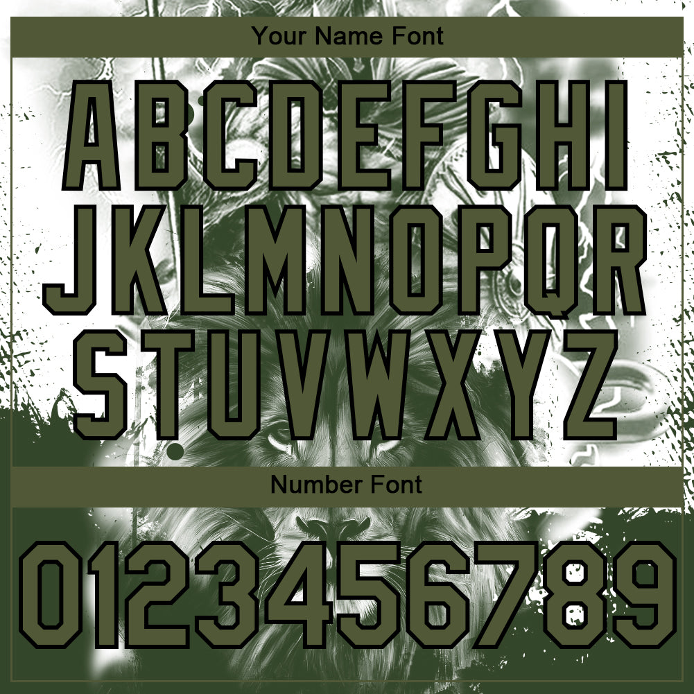Custom White Olive-Black 3D Pattern Design Animal Lion Authentic Baseball Jersey