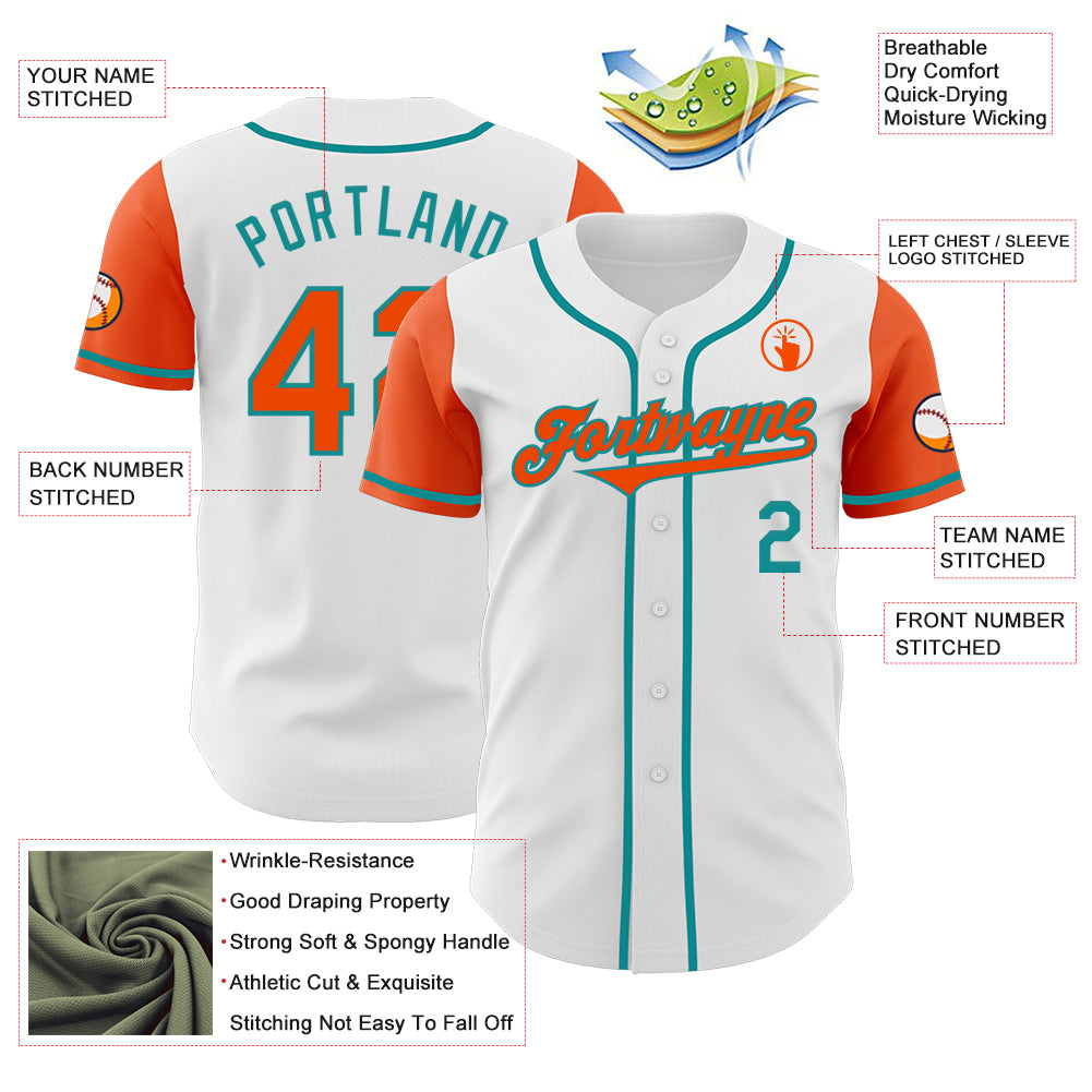 Custom White Orange-Teal Authentic Two Tone Baseball Jersey