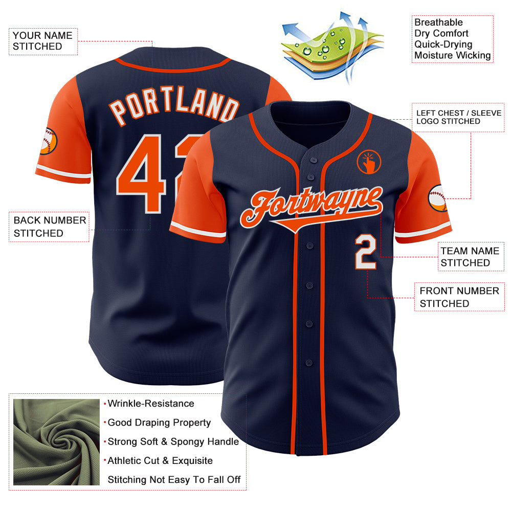 Custom Navy Orange-White Authentic Two Tone Baseball Jersey