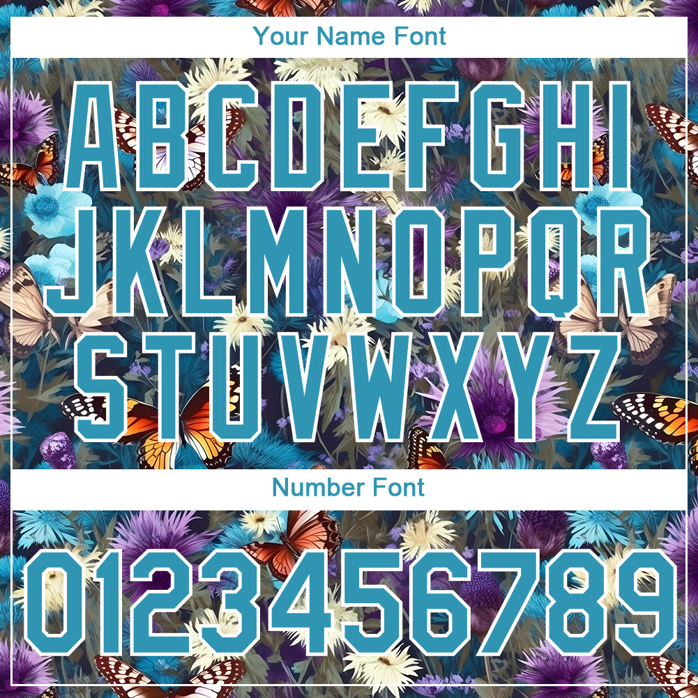 Custom Panther Blue Purple-White 3D Pattern Design Flower With Butterfly Performance T-Shirt