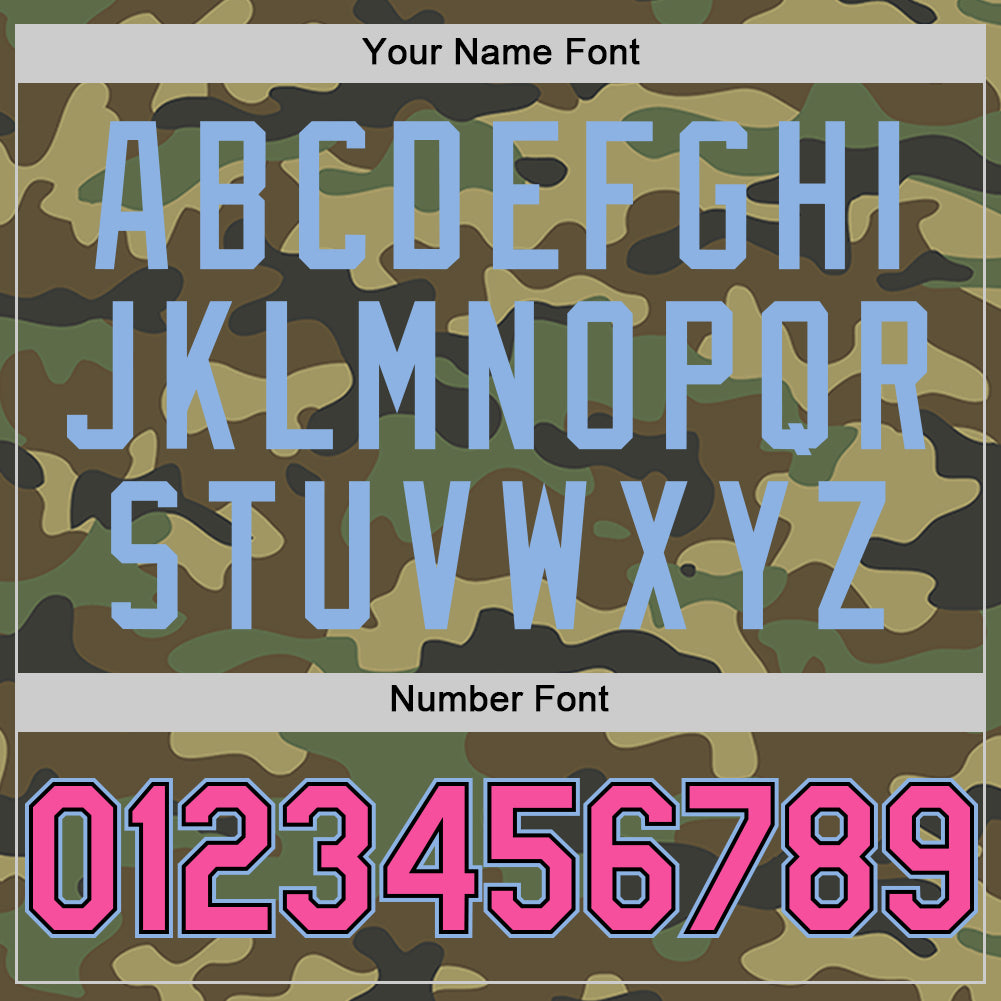 Custom Camo Pink Black-Light Blue Bomber Full-Snap Varsity Letterman Salute To Service Hoodie Jacket