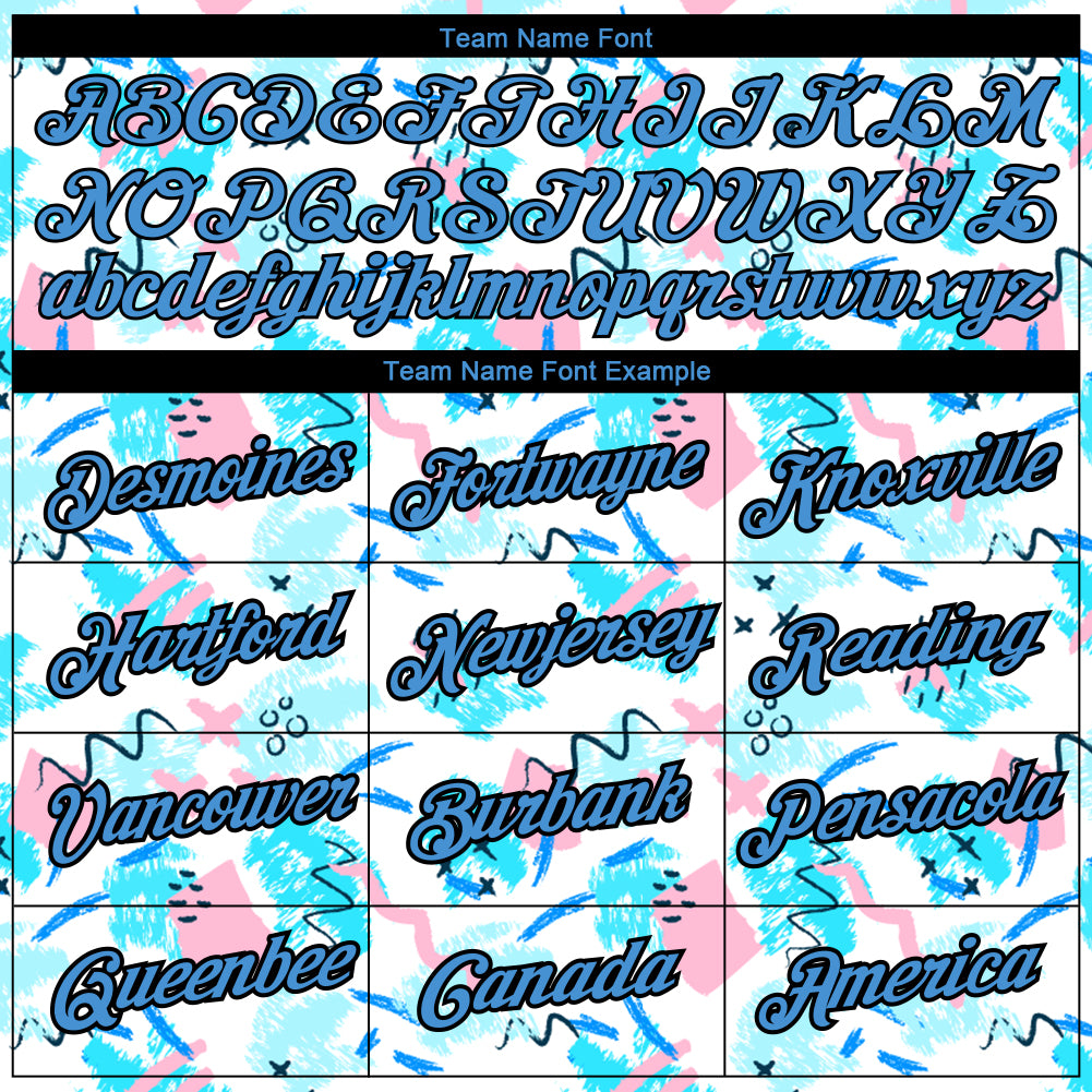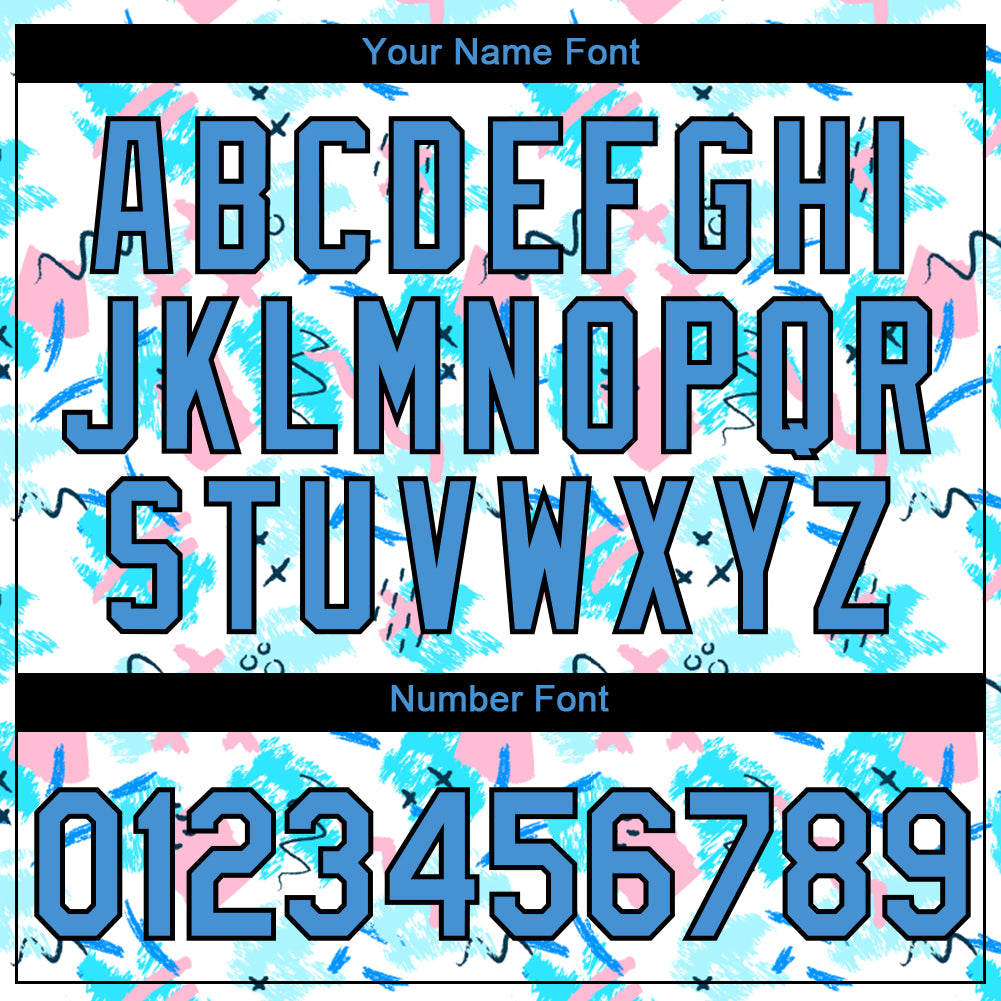 Custom White Powder Blue-Black 3D Pattern Design Abstract Doodle Performance T-Shirt