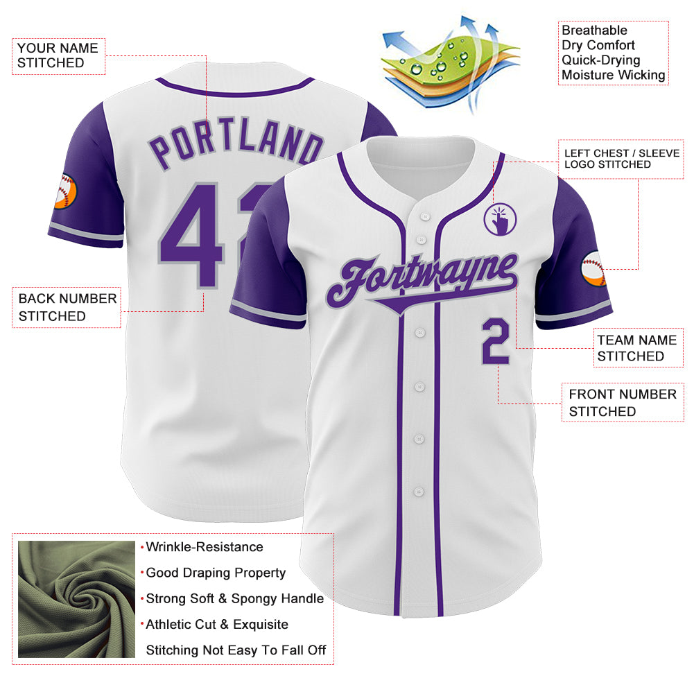 Custom White Purple-Gray Authentic Two Tone Baseball Jersey
