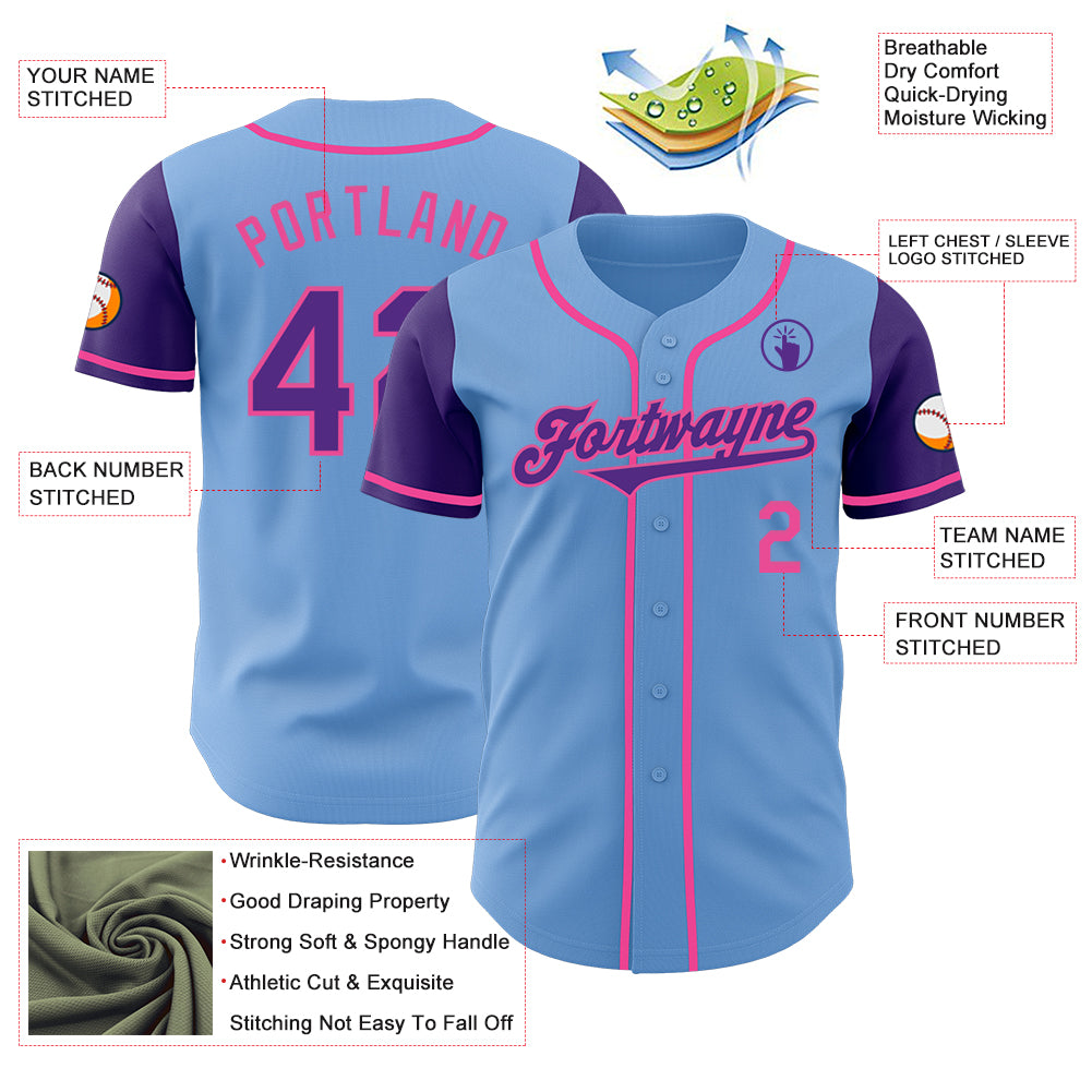 Custom Light Blue Purple-Pink Authentic Two Tone Baseball Jersey