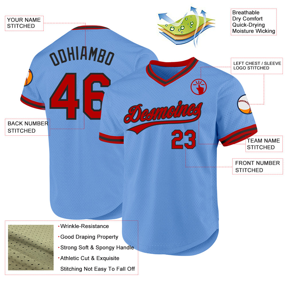 Custom Light Blue Red-Black Authentic Throwback Baseball Jersey