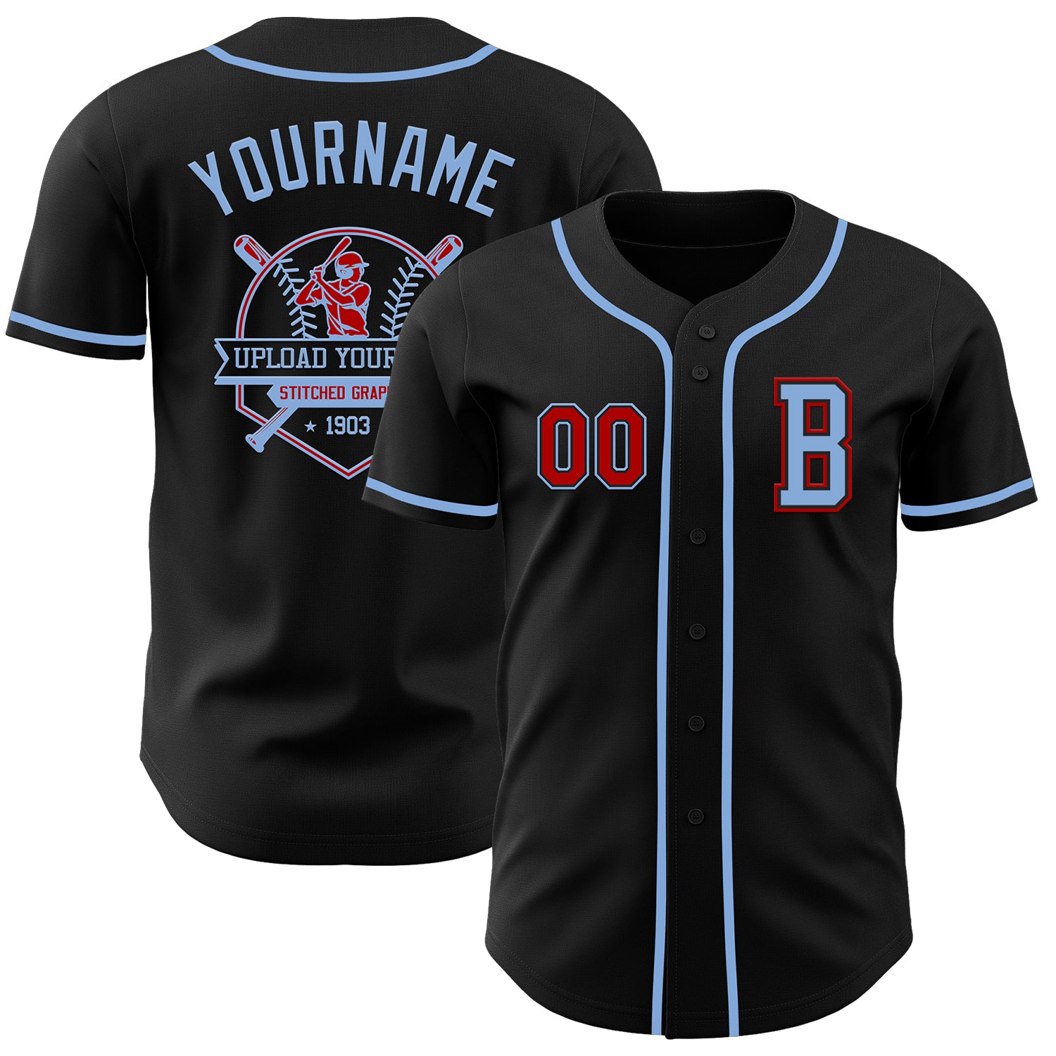 Custom Black Red-Light Blue Authentic Baseball Jersey