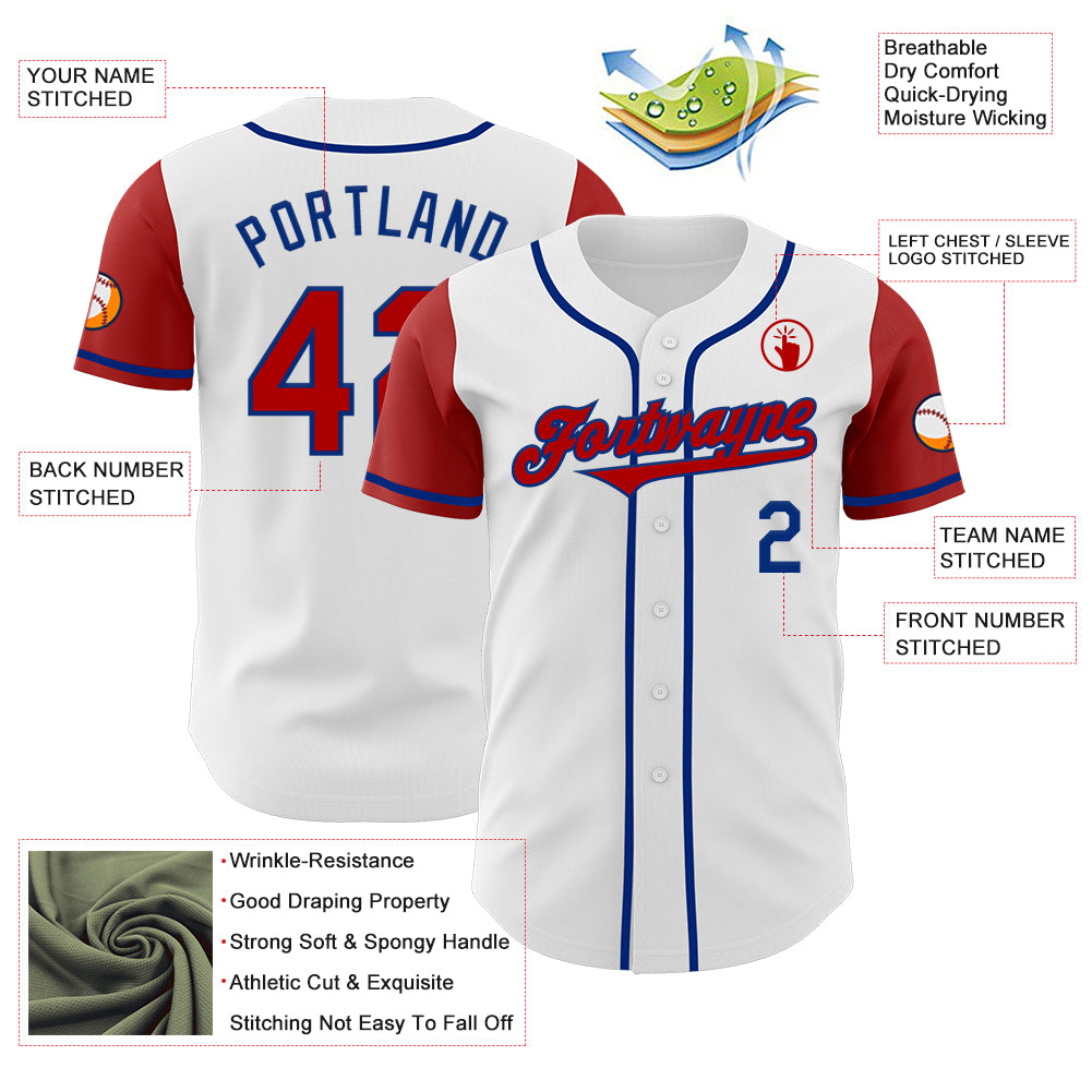 Custom White Red-Royal Authentic Two Tone Baseball Jersey