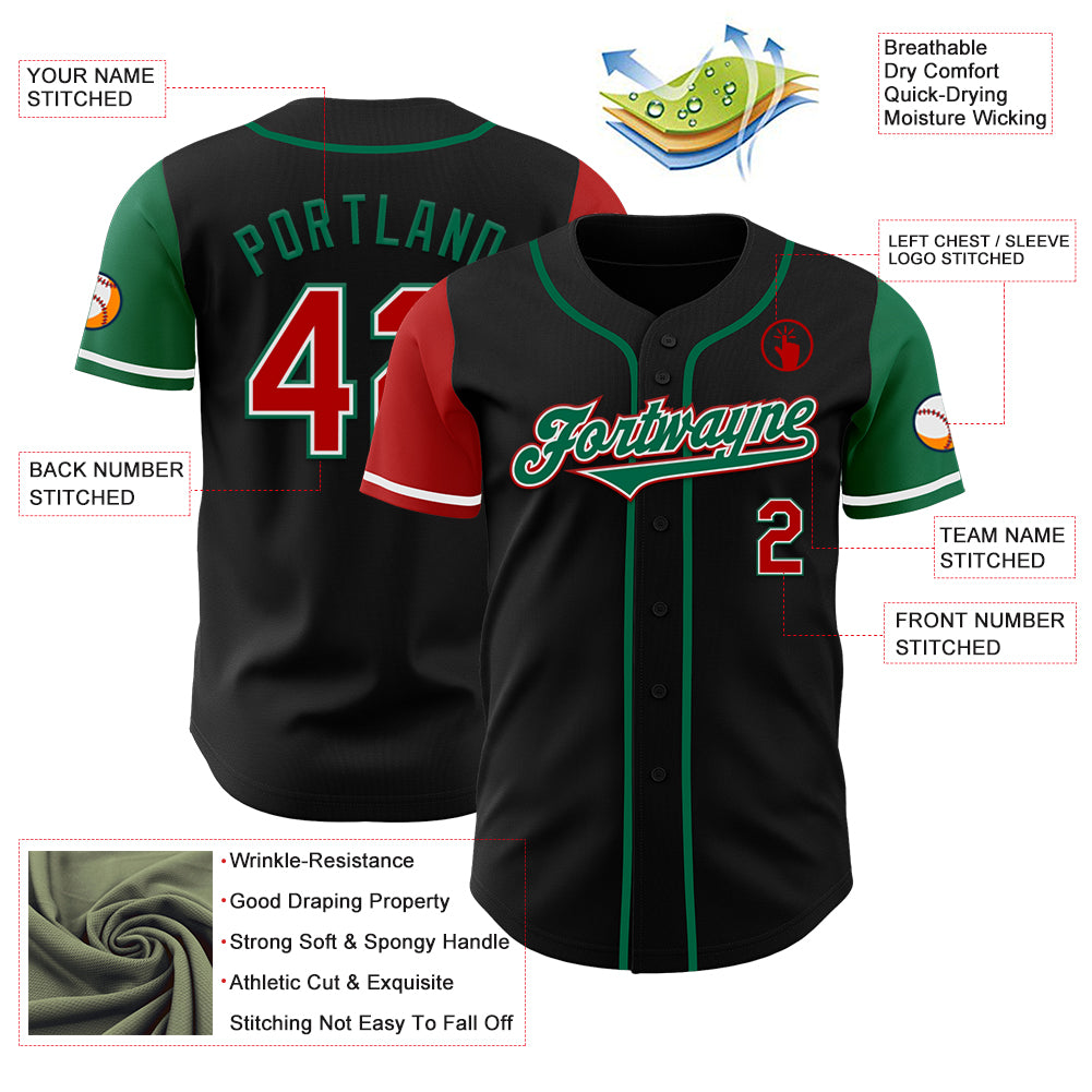 Custom Black Red-Kelly Green Authentic Two Tone Baseball Jersey